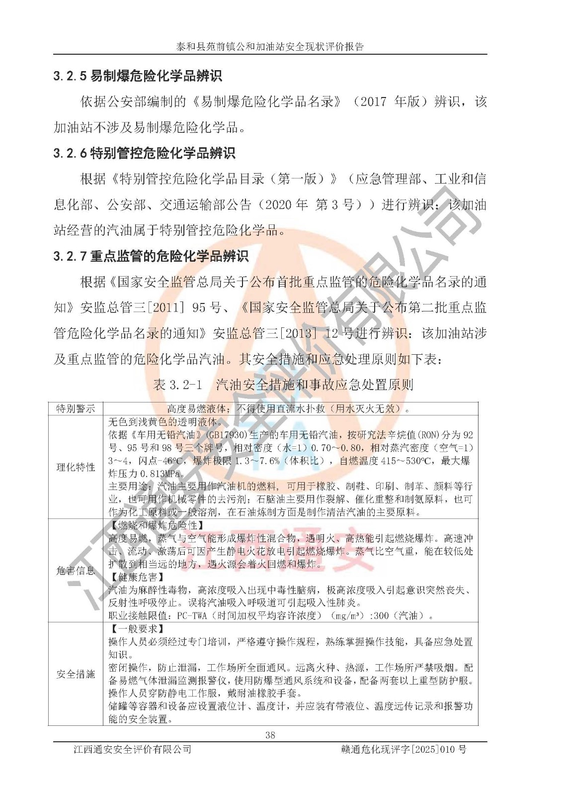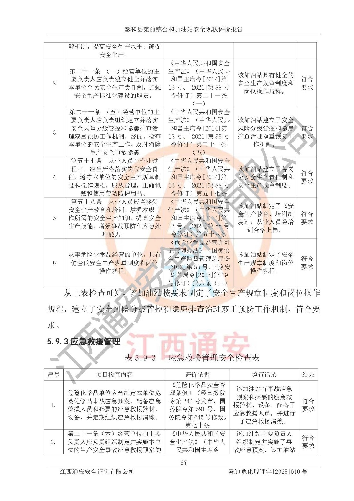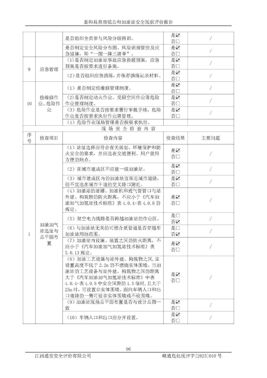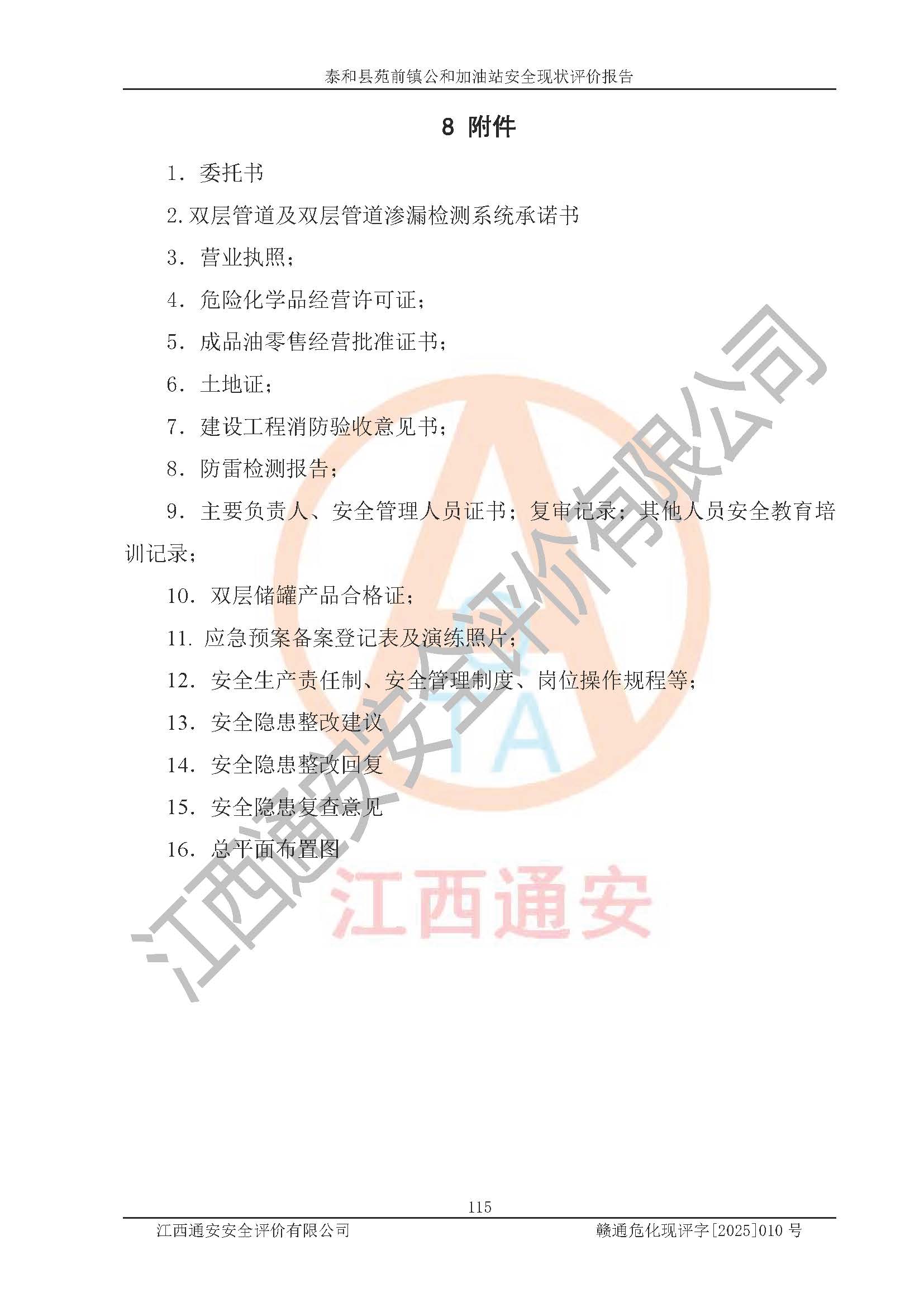 项目名称 | 泰和县苑前镇公和加油站安全现状评价报告 | ||||