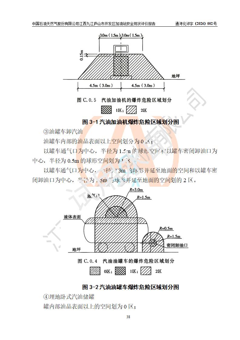 项目简介 | 中国石油天然气股份有限公司江西九江庐山市开发区加油站是一家专门从事成品油零售经营的其他股份有限公司分公司(上市),经营场所位于江西省九江市庐山市金鹿工业园西北处、环庐山路东侧。现有从业人员9名,其中安全管理人员1人,加油站负责人杨全荣。 该加油站占地面积为4000m2,站区内设置有2台四枪和4台双枪程控燃油加油机及配套的工艺管线,设有SF双层储罐5台,其中30m3的0#柴油储罐2台、30m3的92#汽油储罐2台,30m3的95#汽油储罐1台,油品储罐总容积为150m3(折算成汽油为120m3),按现行《汽车加油加气加氢站技术标准》对加油站的等级划分原则,属二级加油站。 该站由九江市行政审批局换发《危险化学品经营许可证》(证号:赣九行审经(甲)字[2023]000013号),**期限2023年04月27日至2026年04月26日。 | |||