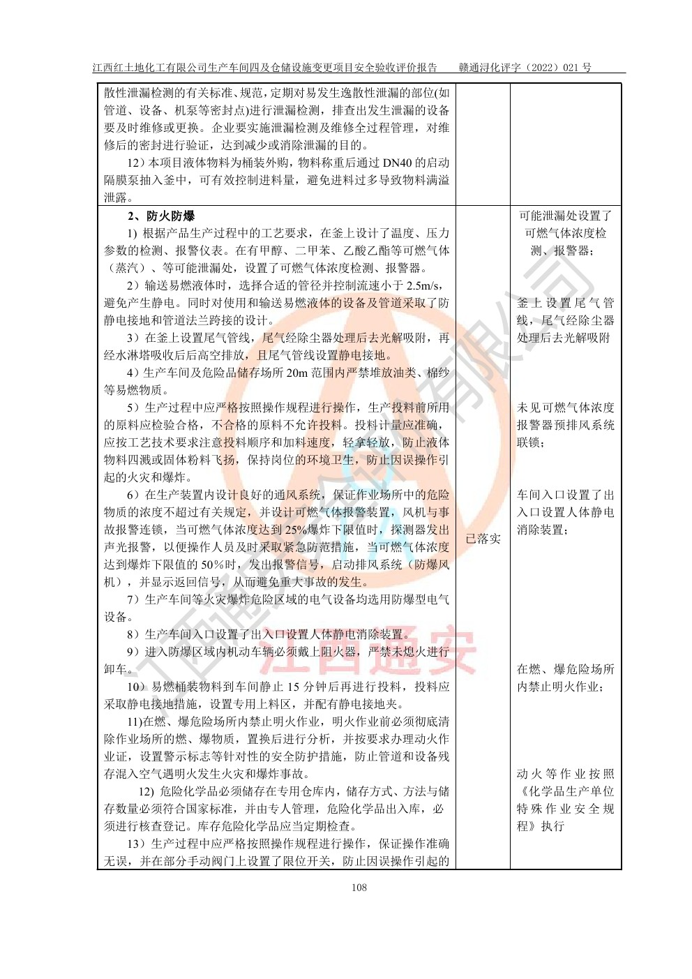 江西红土地化工有限公司生产车间四及仓储设施变更项目安全验收评价报告