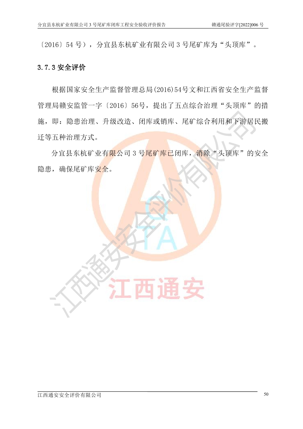 分宜县东杭矿业有限公司3号尾矿库闭库工程安全验收评价报告