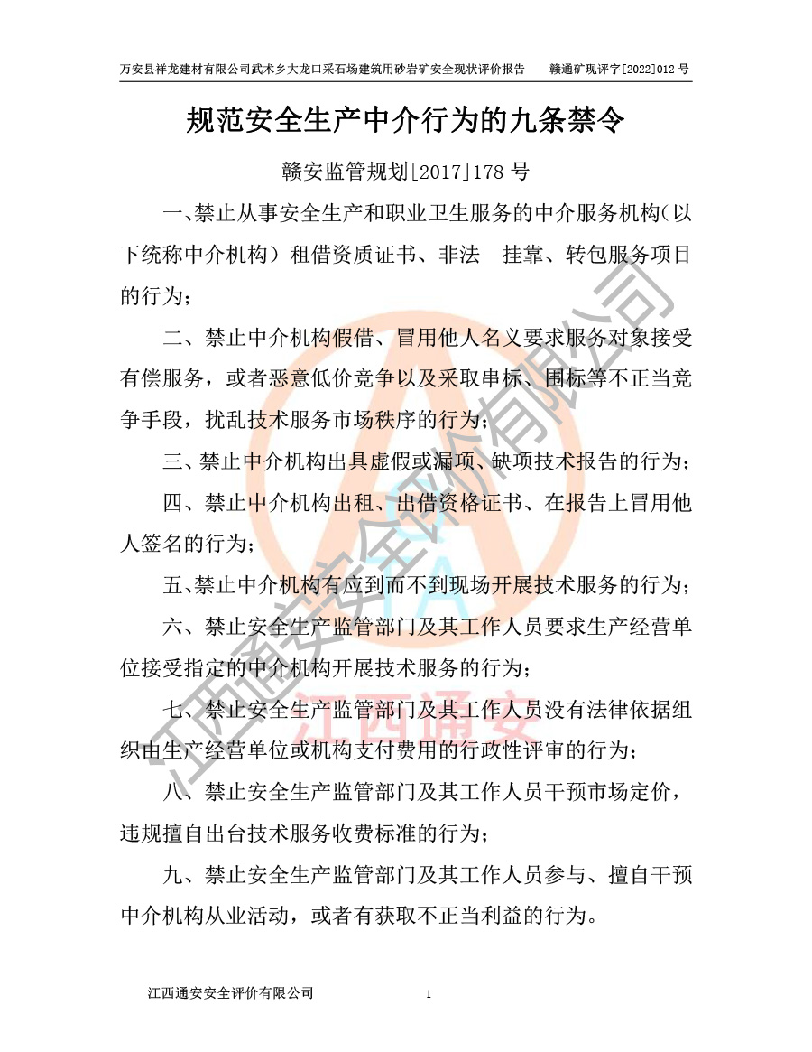 万安县武术乡大龙口采石场安全现状评价报告公示