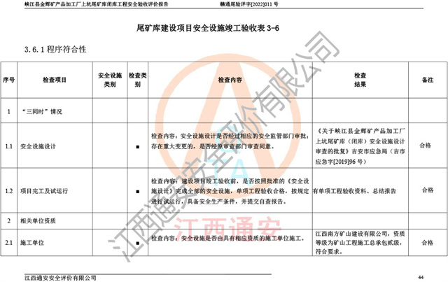 峡江县金辉矿产品加工厂上坑尾矿库闭库工程安全验收评价报告