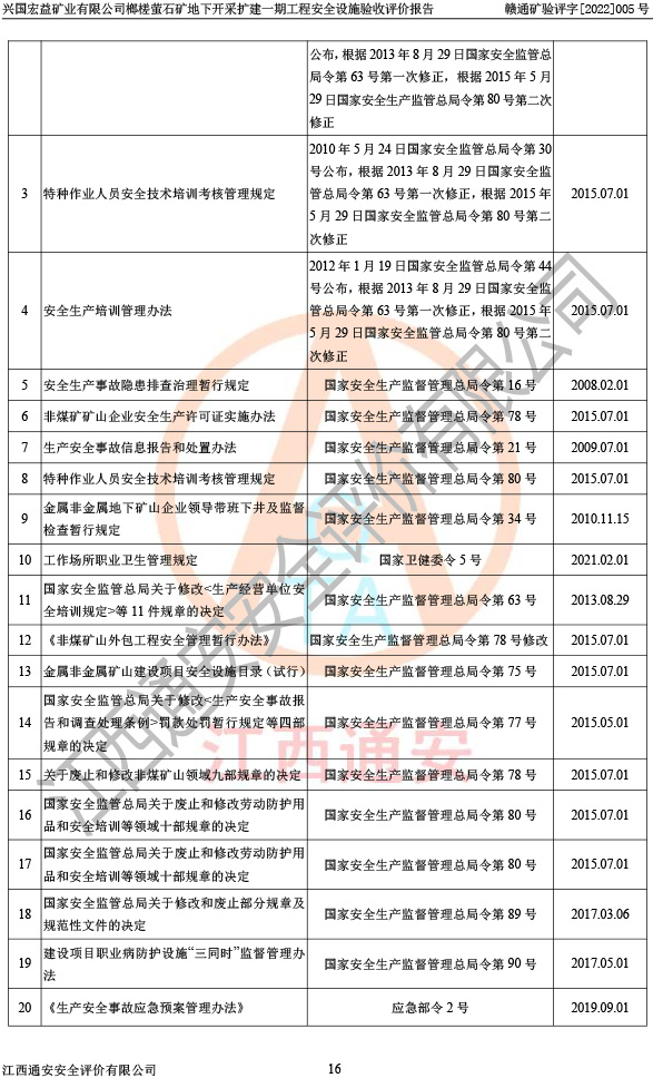 兴国宏益矿业有限公司榔槎萤石矿地下开采扩建一期工程安全设施验收评价报告