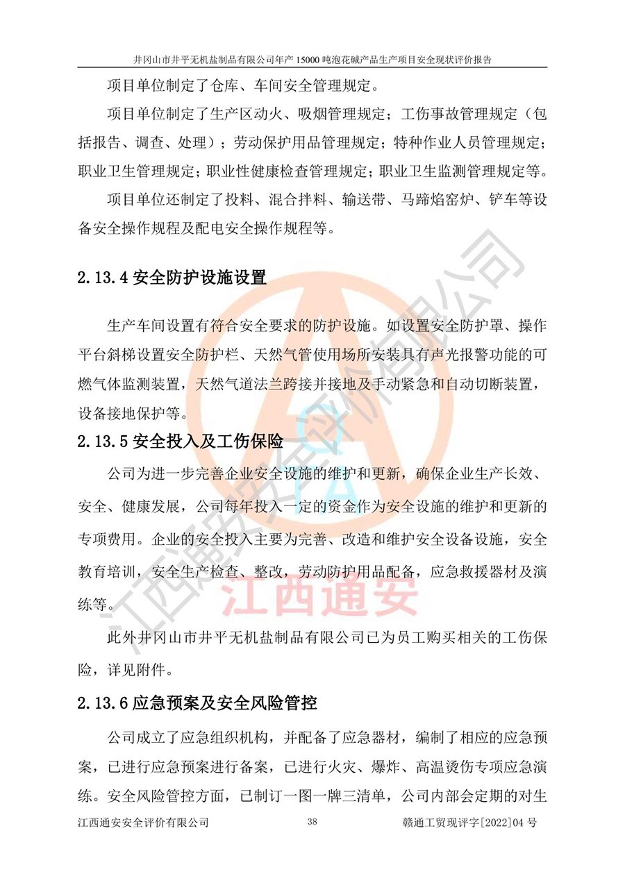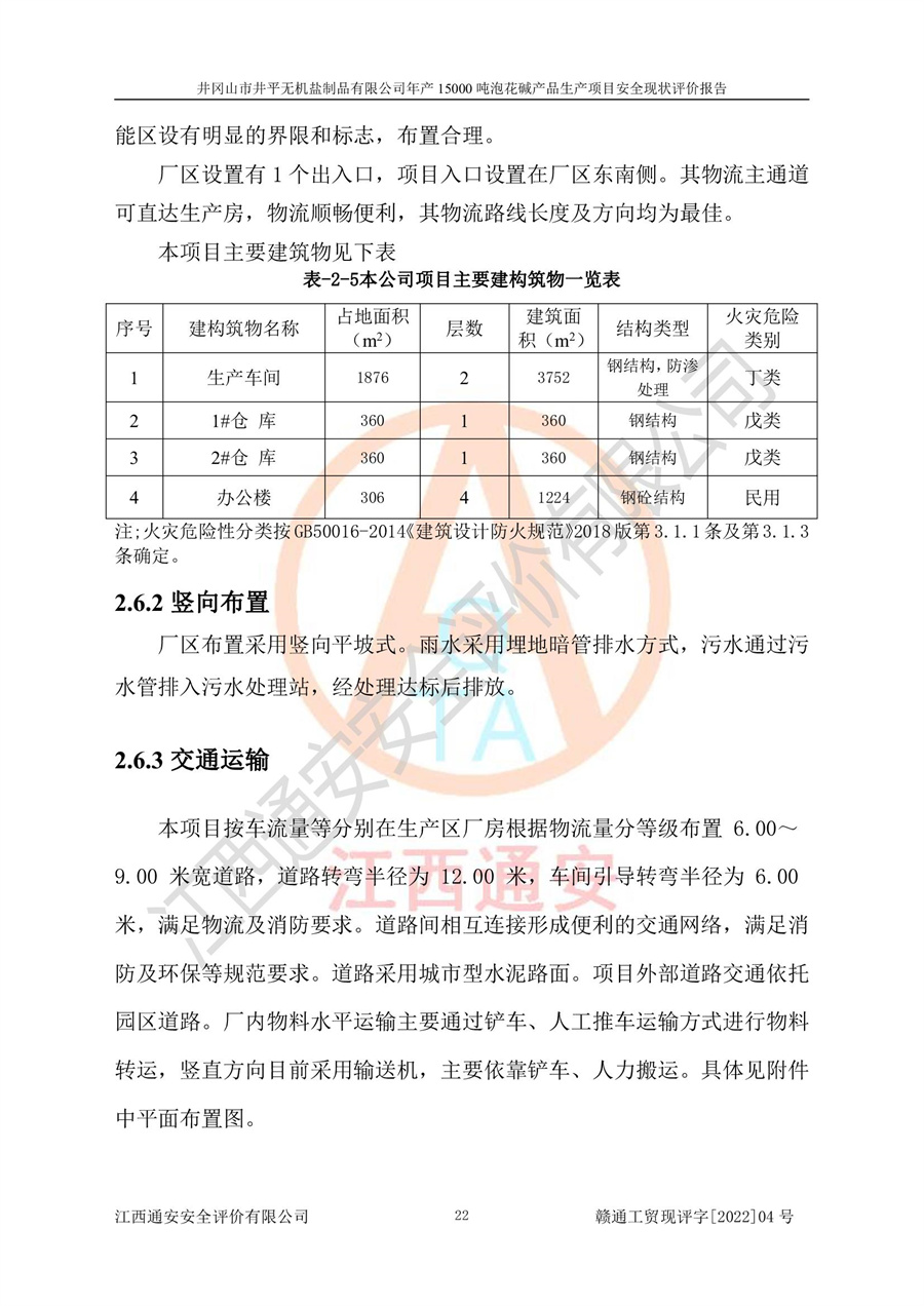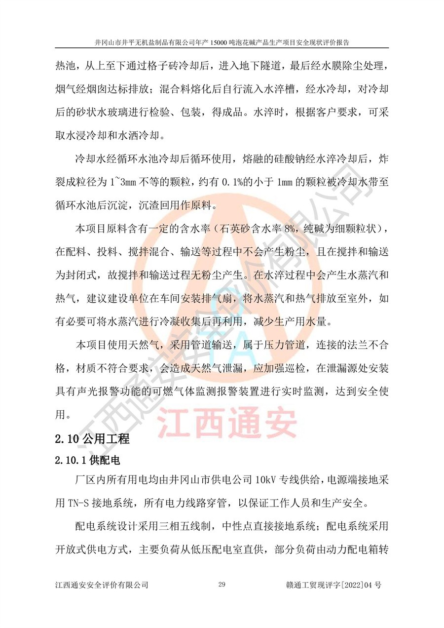 井冈山市井平无机盐制品有限公司年产15000吨泡花碱产品生产项目安全现状评价报告