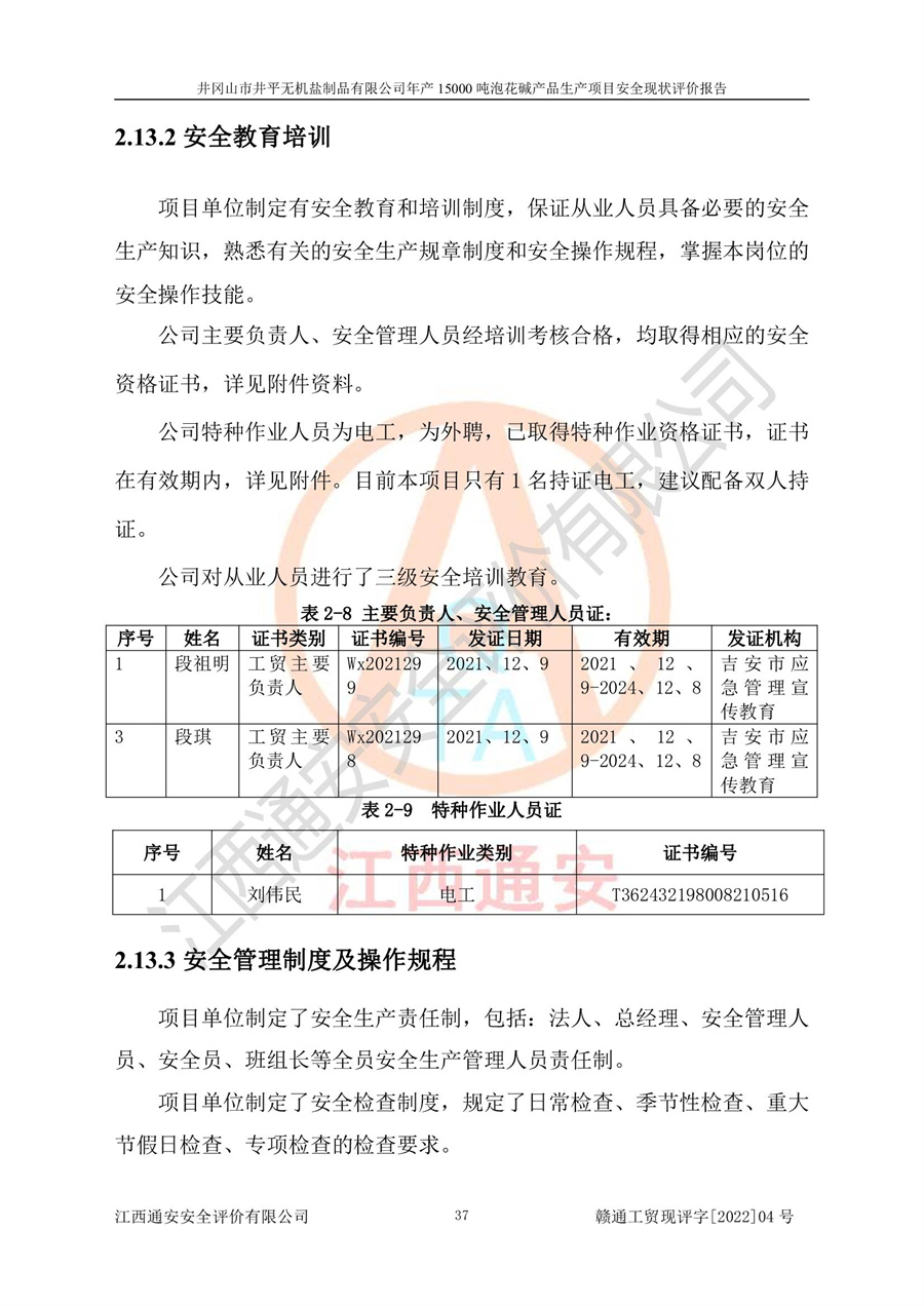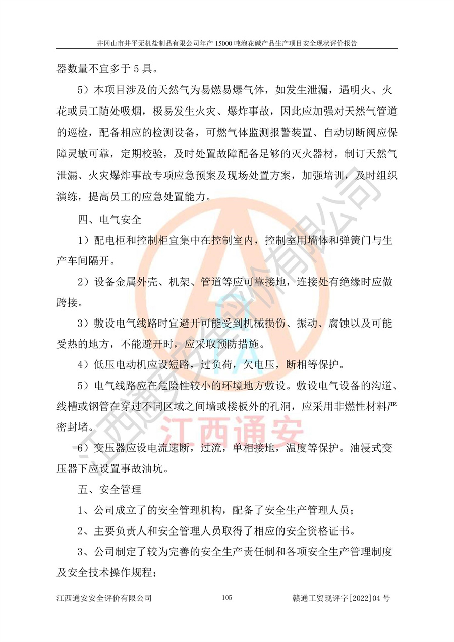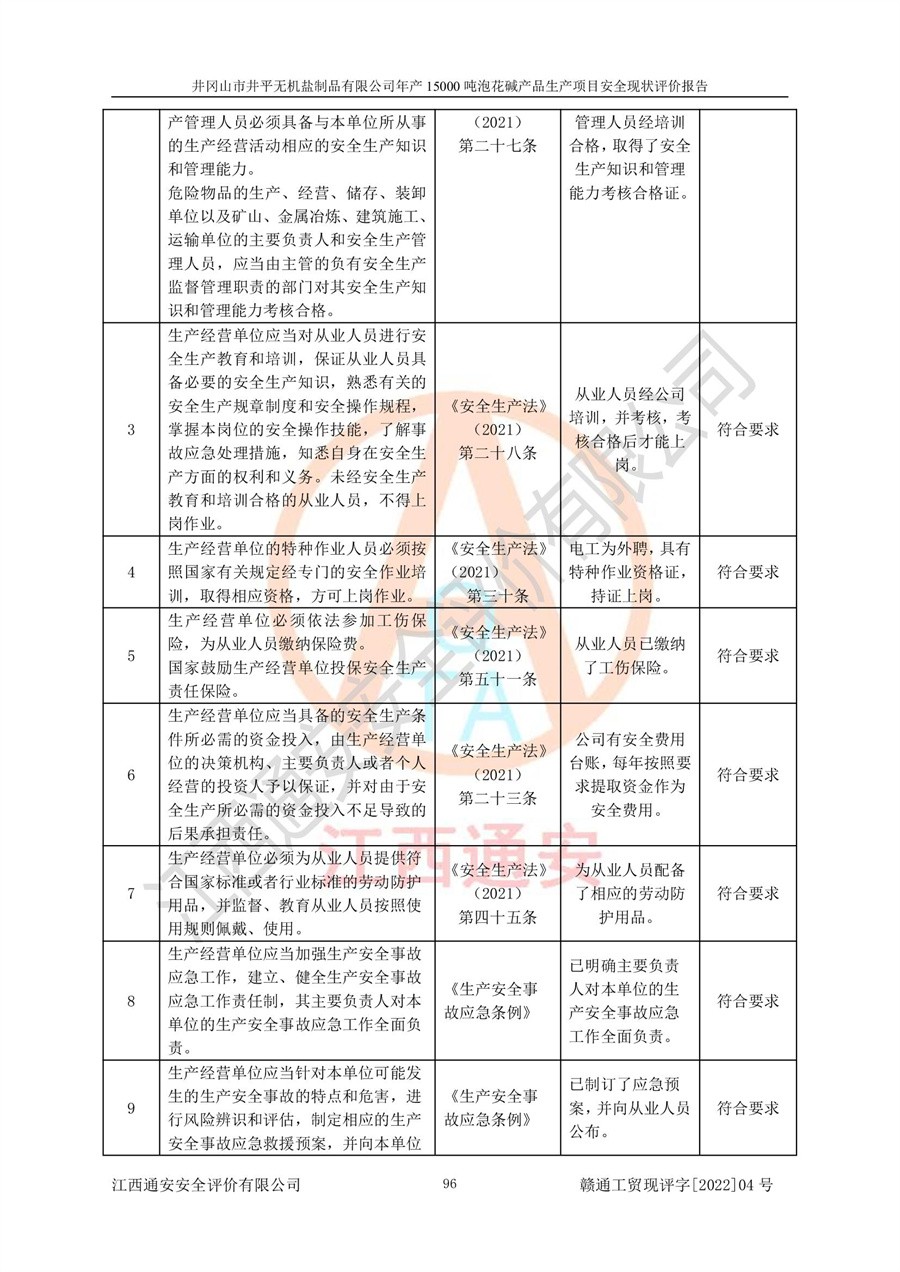 井冈山市井平无机盐制品有限公司年产15000吨泡花碱产品生产项目安全现状评价报告