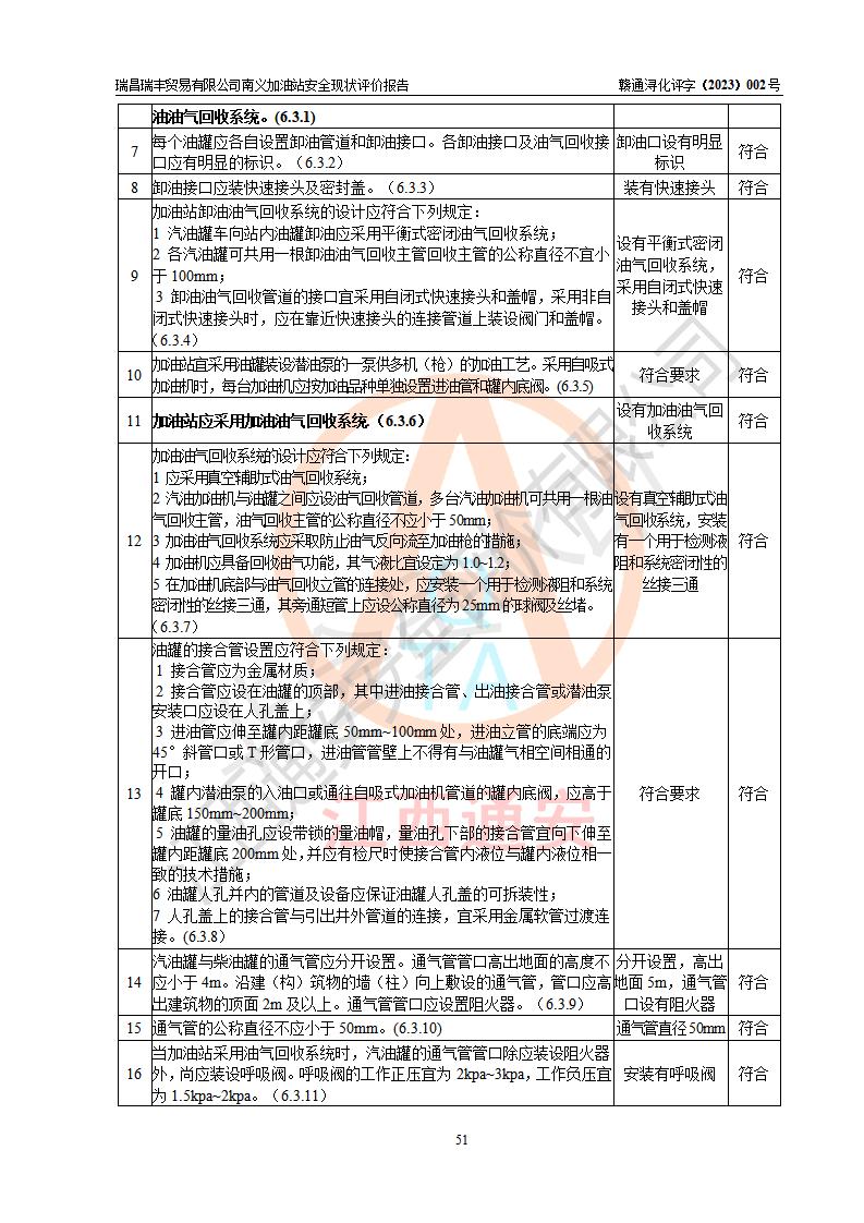 评价结论 | 瑞昌瑞丰贸易有限公司南义加油站涉及的安全条件、安全经营条件、安全生产管理符合《危险化学品经营许可证管理办法》、《汽车加油加气加氢站技术标准》等**有关法规、标准规范要求,能满足危险化学品经营安全条件。 | |||