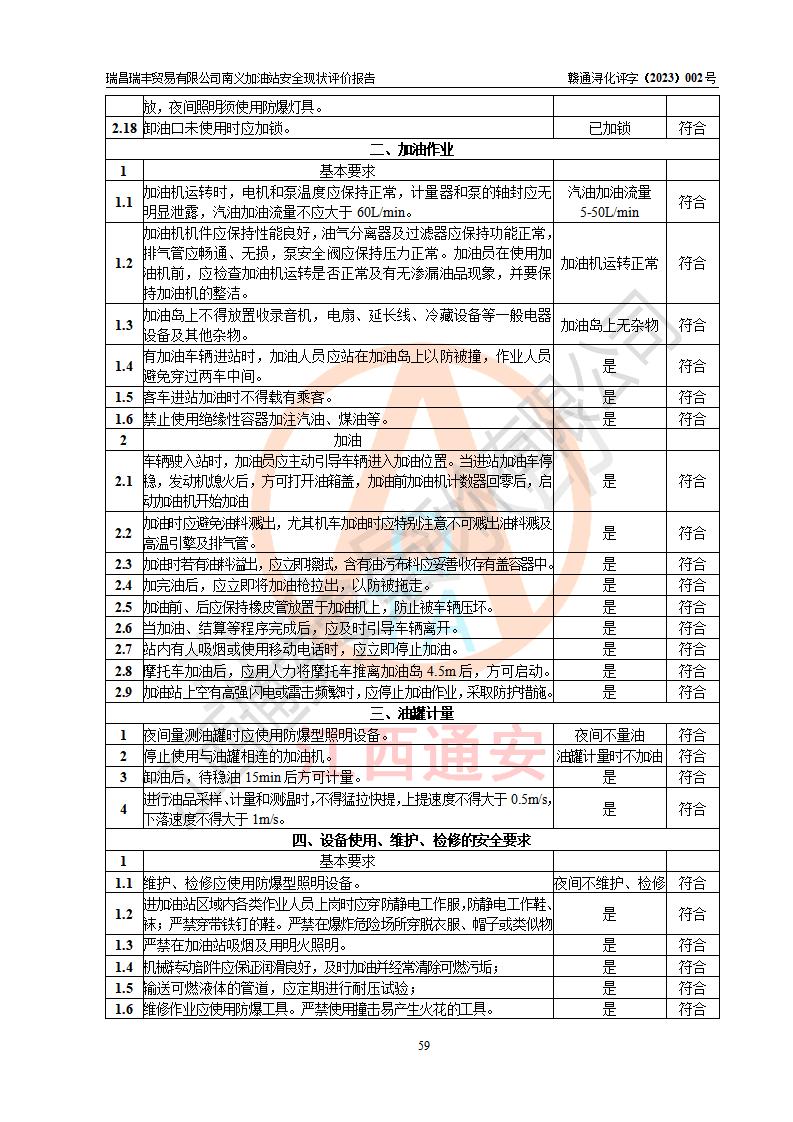 评价报告名称 | 瑞昌瑞丰贸易有限公司南义加油站安全现状评价报告 | |||