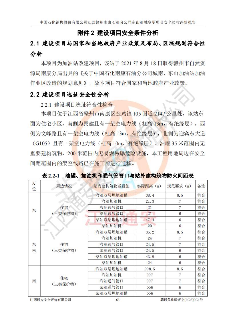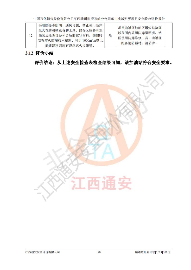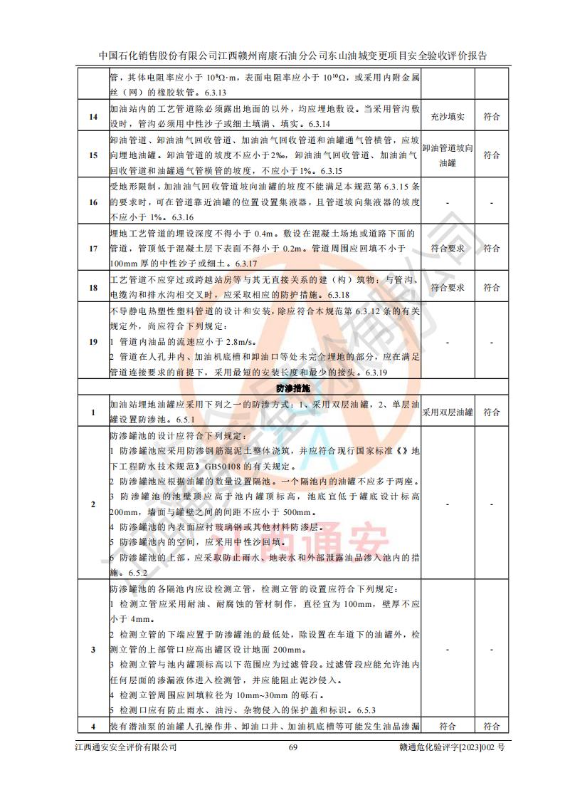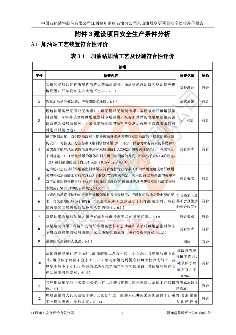 项目名称 | 中国石化销售股份有限公司江西赣州南康石油分公司东山油城变更项目安全验收评价报告 | ||||