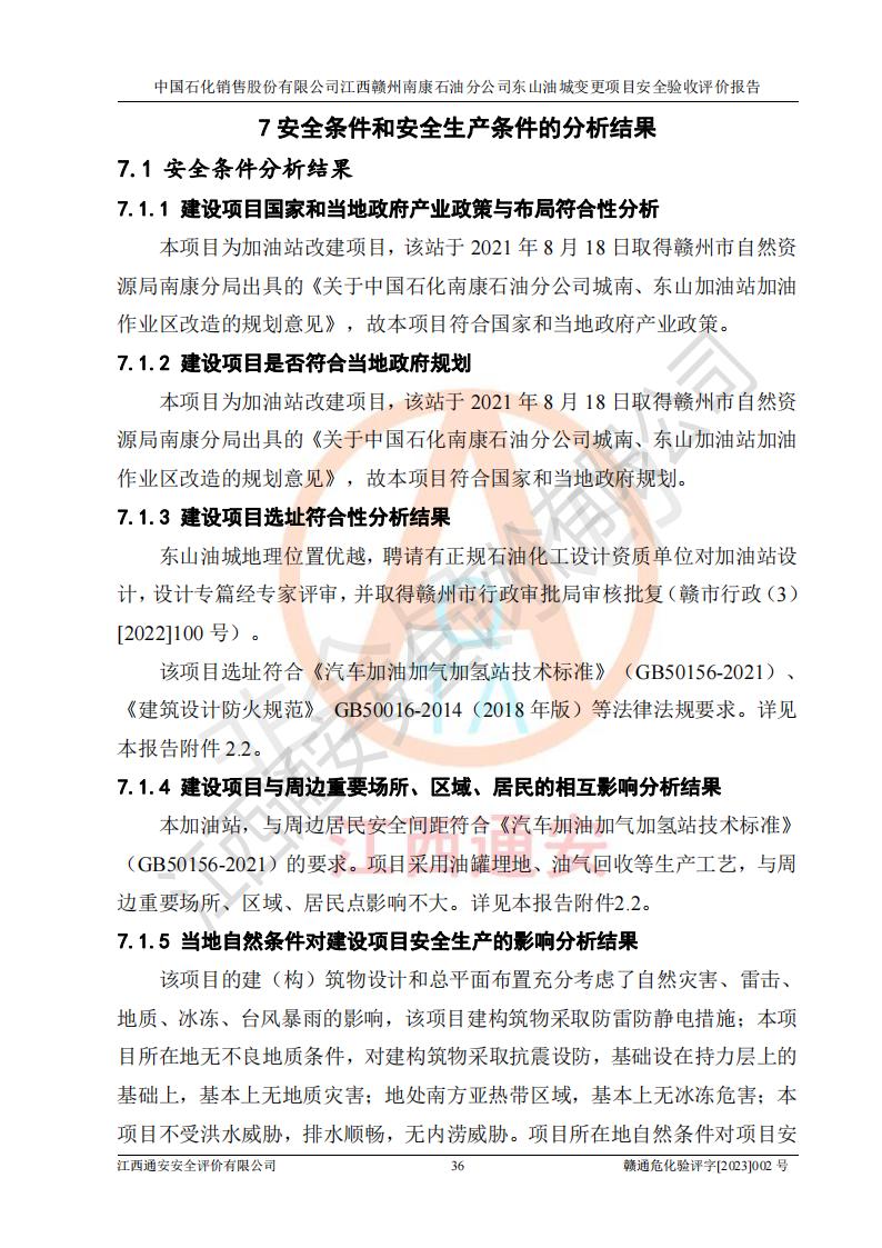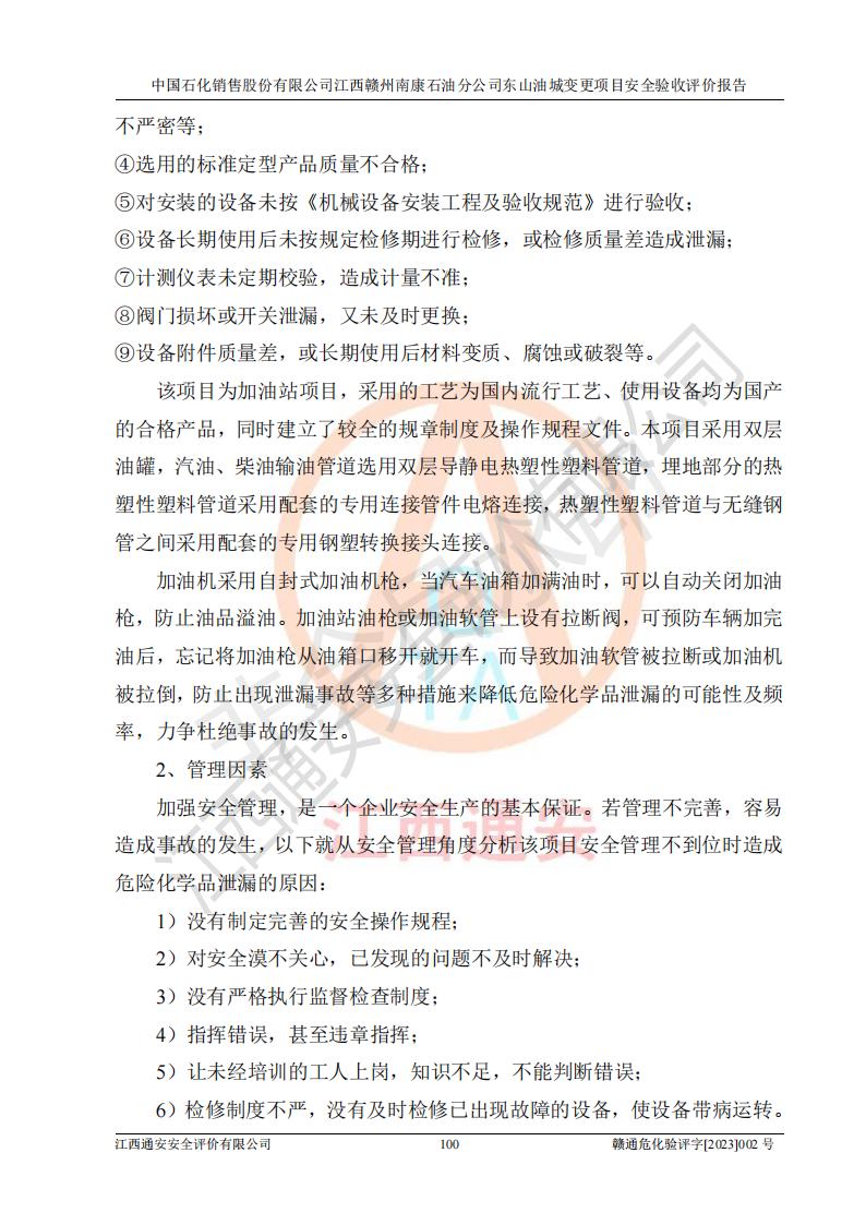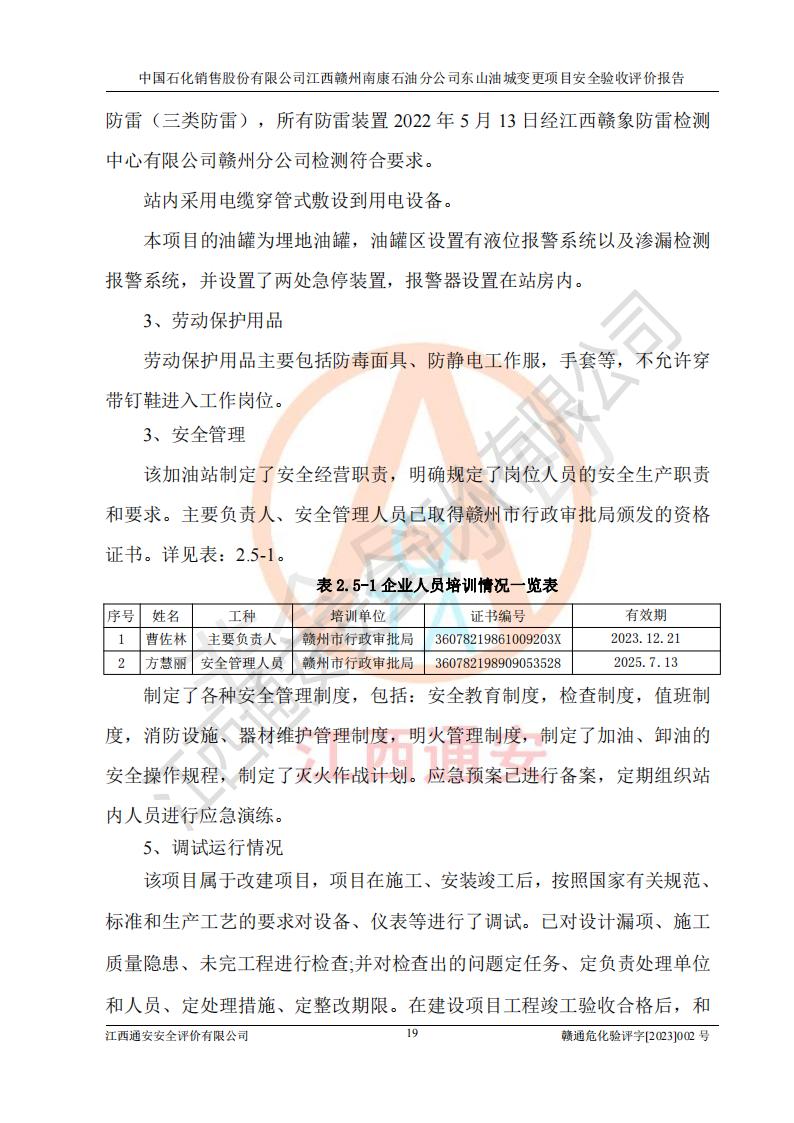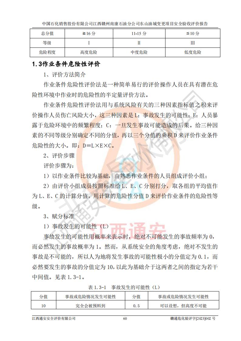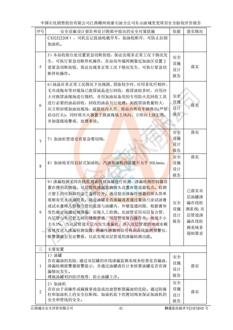 项目名称 | 中国石化销售股份有限公司江西赣州南康石油分公司东山油城变更项目安全验收评价报告 | ||||