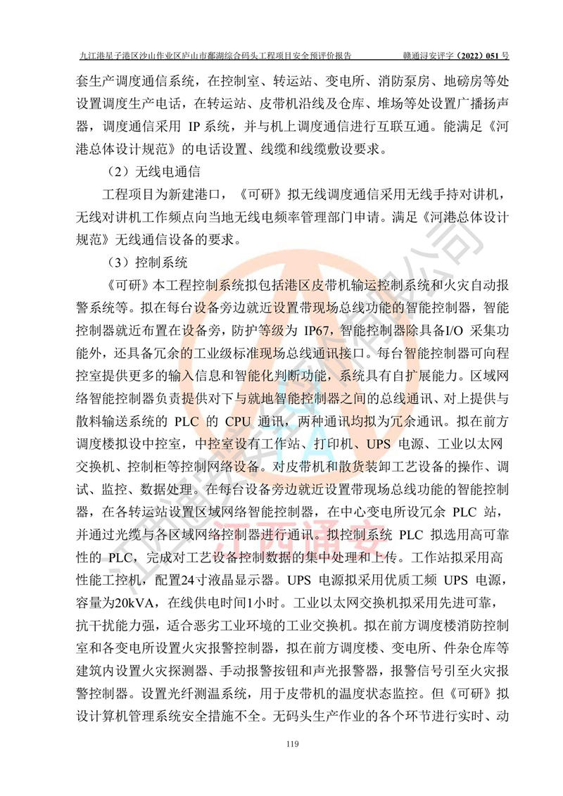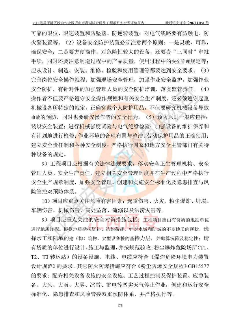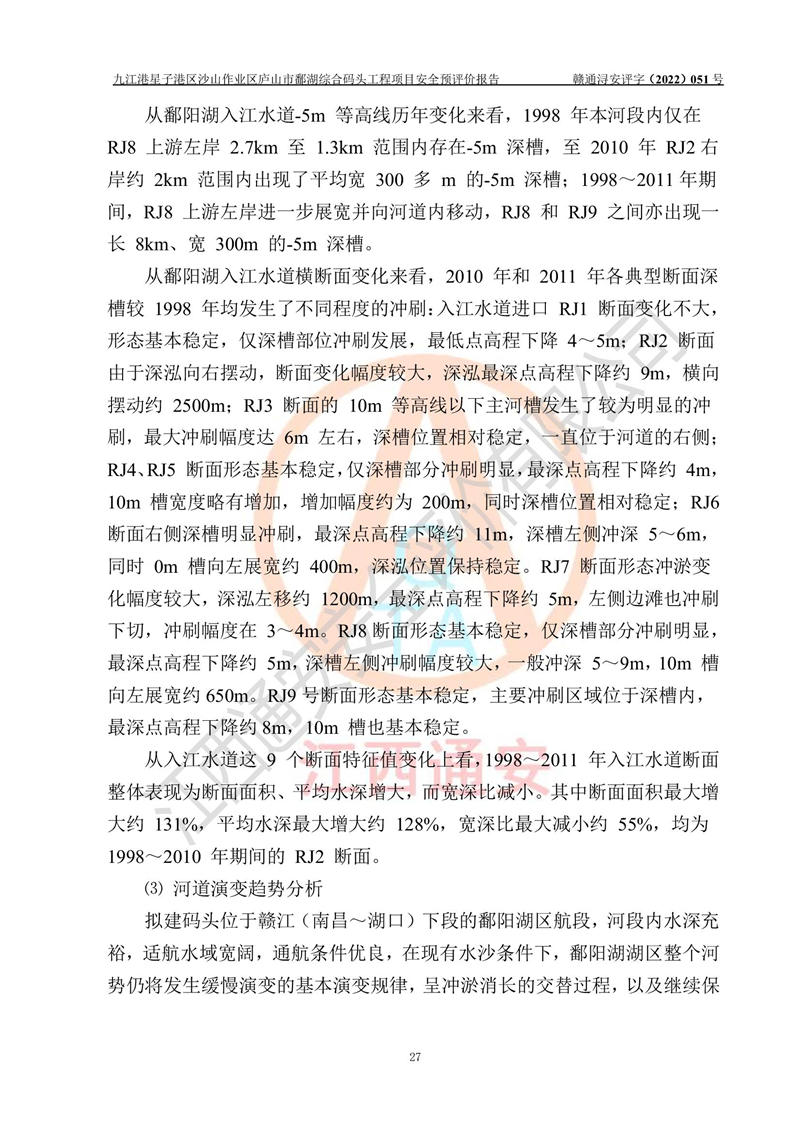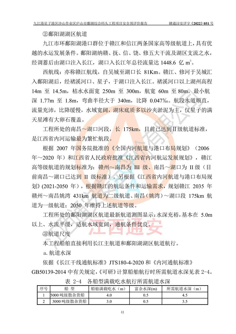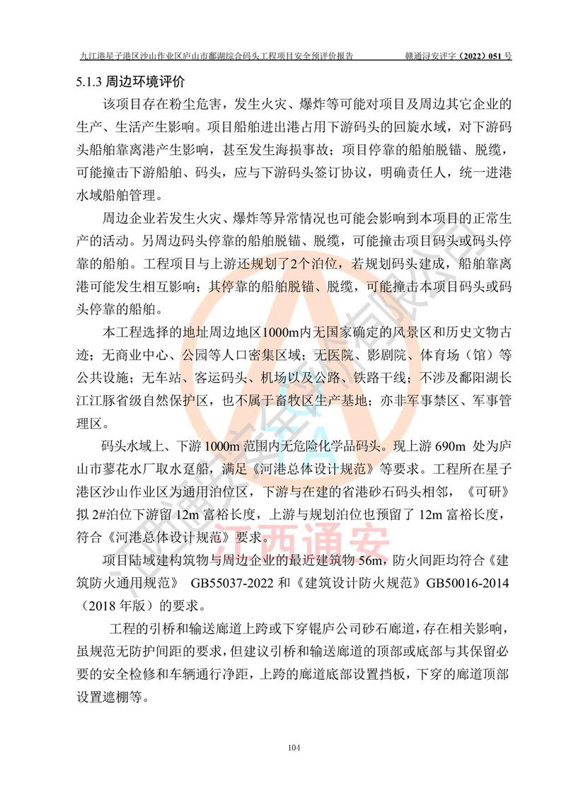 评价报告名称 | 九江港星子港区沙山作业区庐山市鄱湖综合码头工程项目安全预评价报告 | |||||