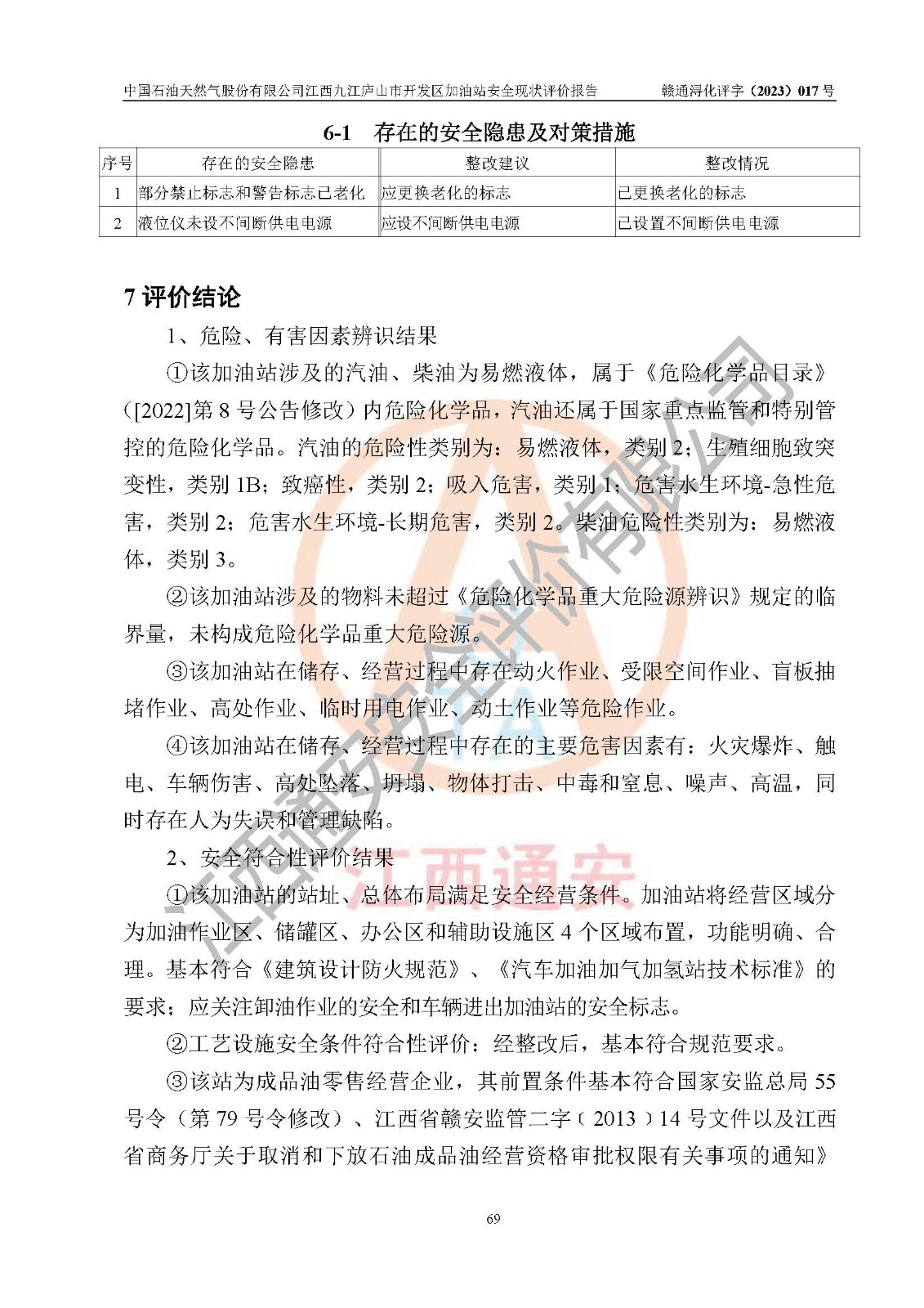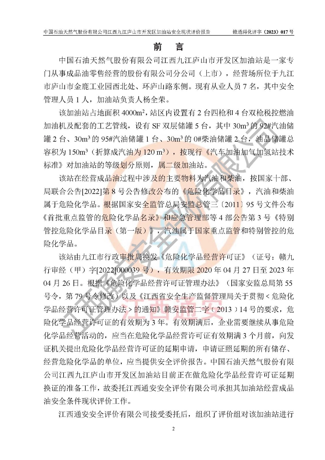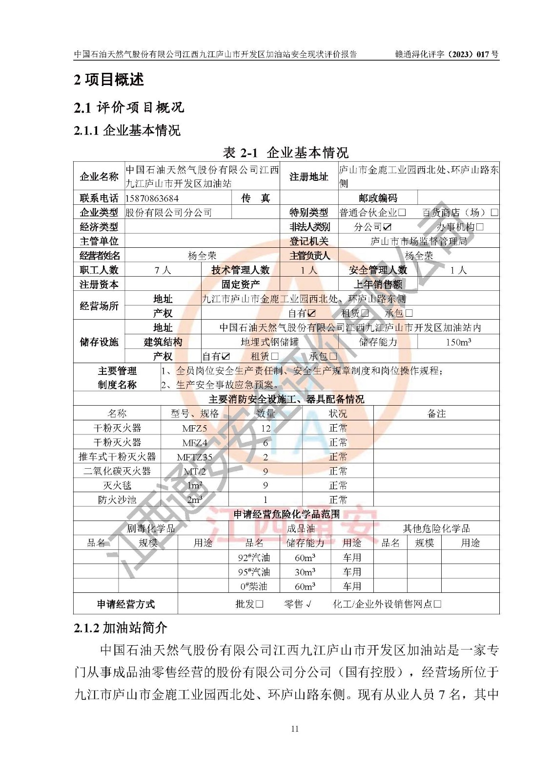 评价报告名称 | 中国石油天然气股份有限公司江西九江庐山市开发区加油站安全现状评价报告 | |||
