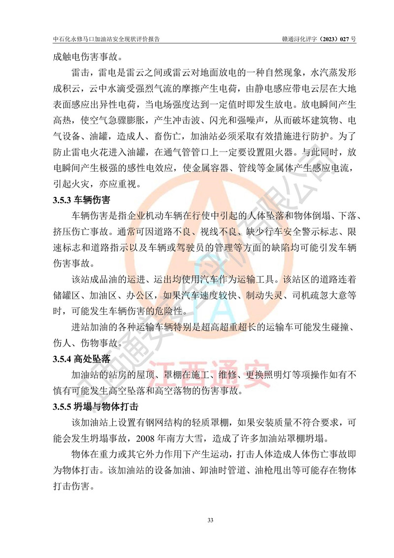 评价报告名称 | 中国石化销售股份有限公司江西九江永修石油分公司马口加油站安全现状评价报告 | |||