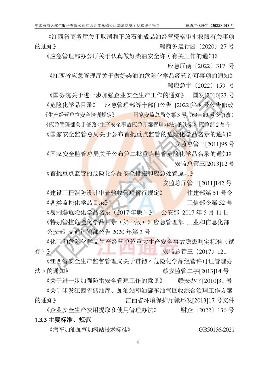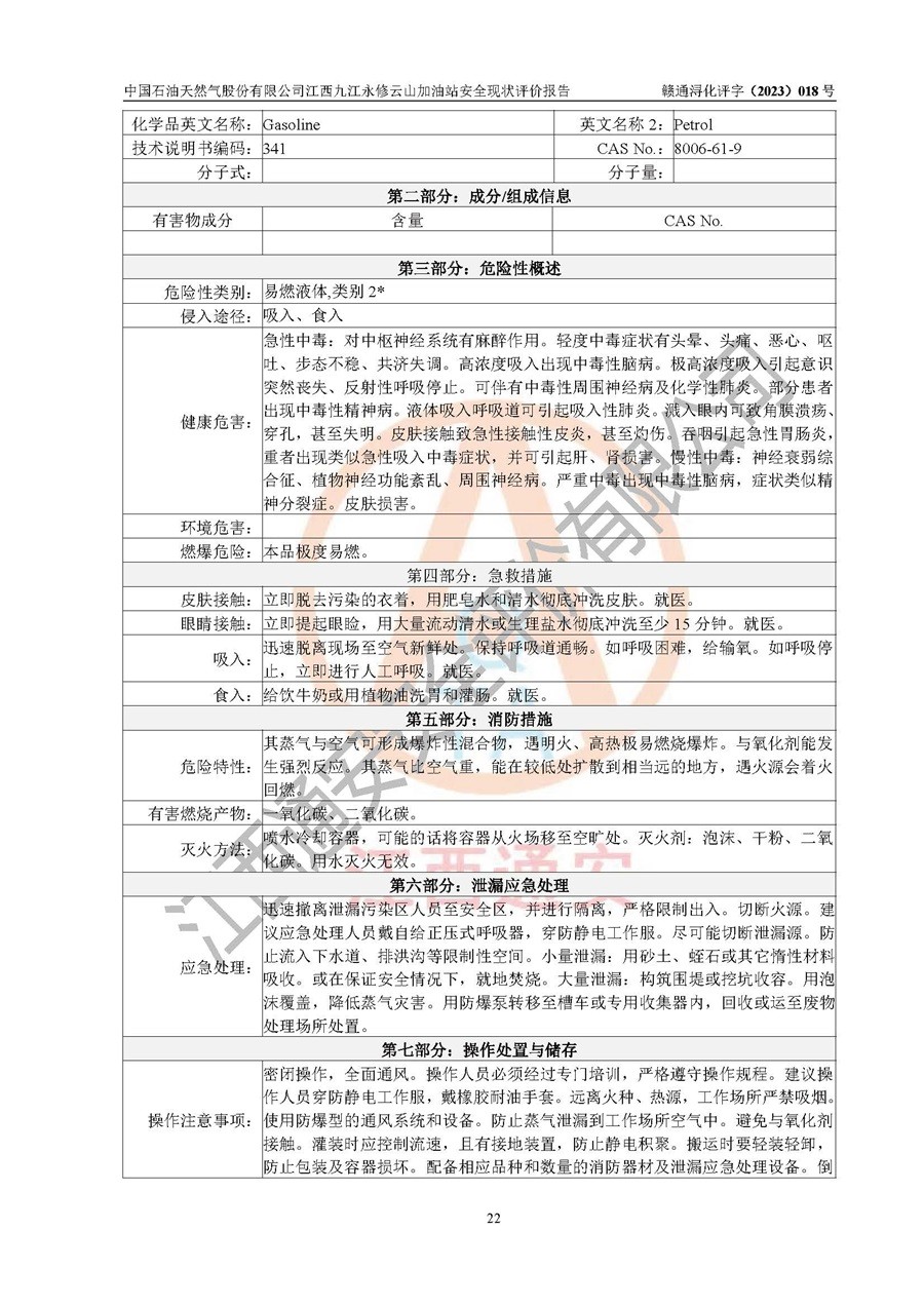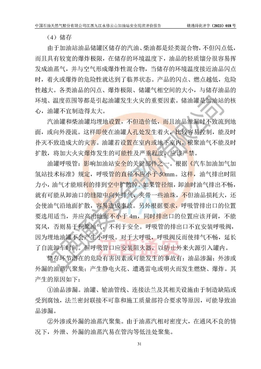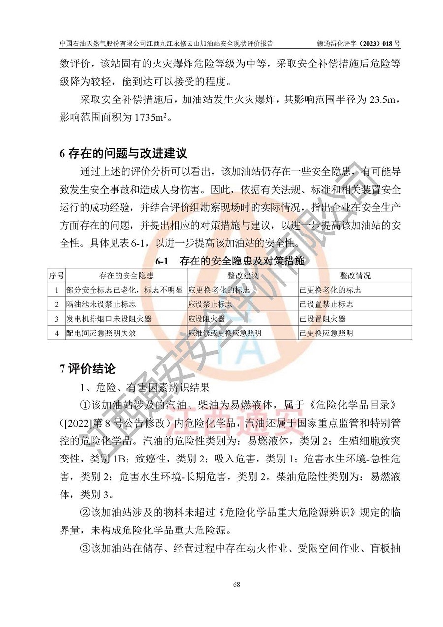 评价报告名称 | 中国石油天然气股份有限公司江西九江永修云山加油站安全现状评价报告 | |||