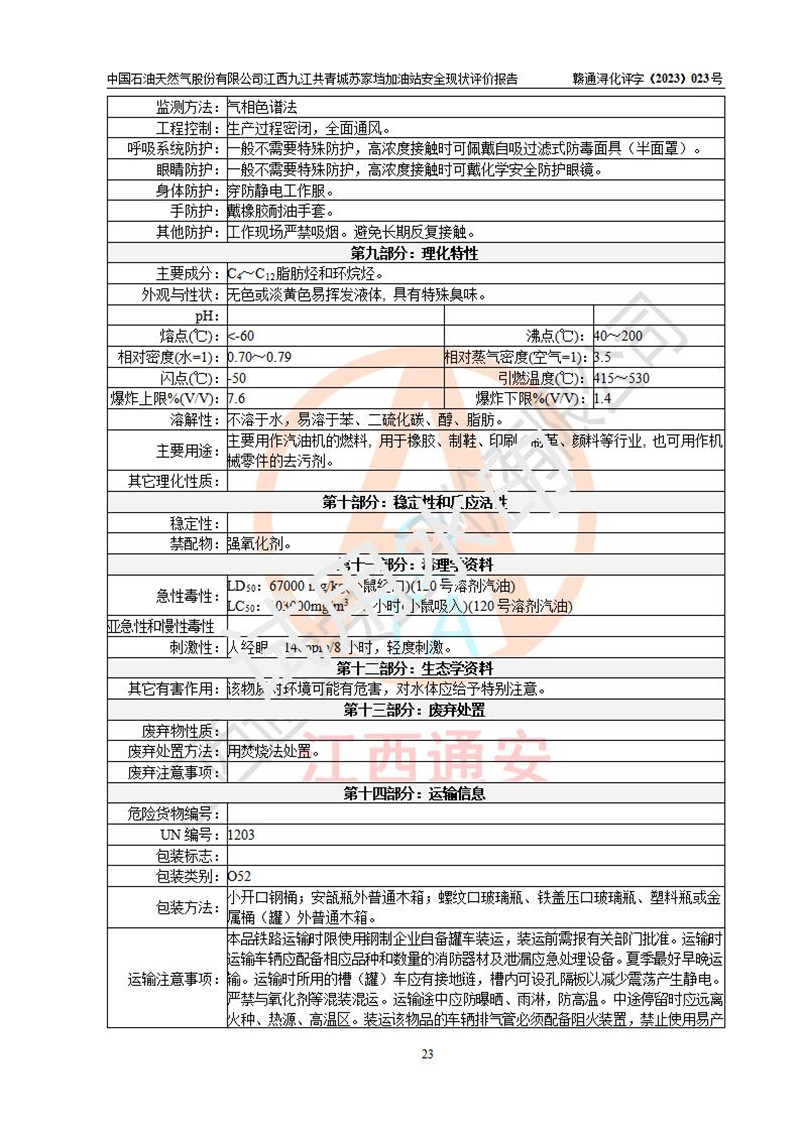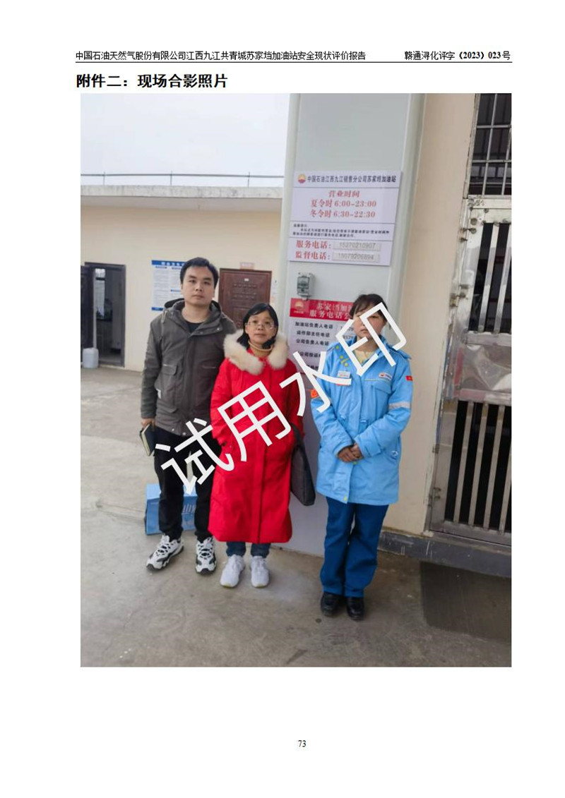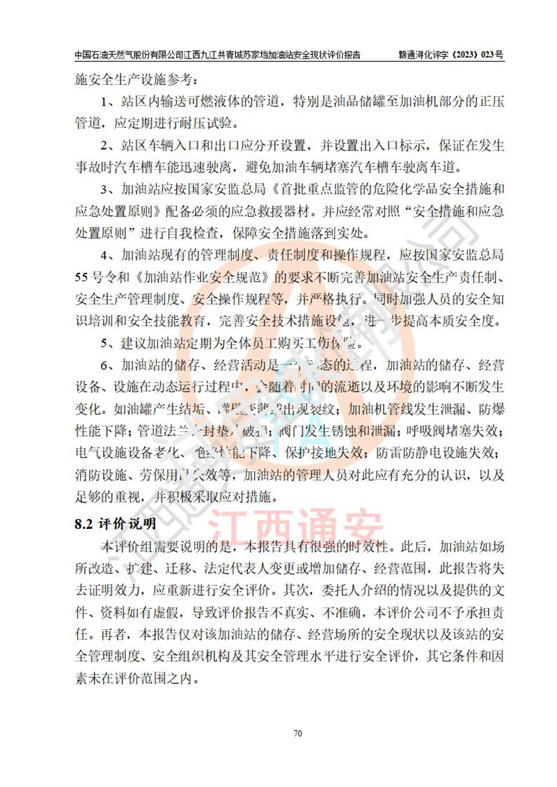 评价报告名称 | 中国石油天然气股份有限公司江西九江共青城苏家垱加油站安全现状评价报告 | |||