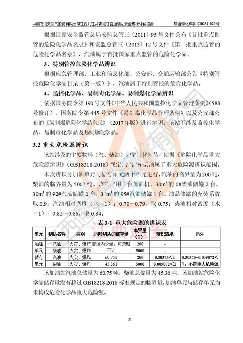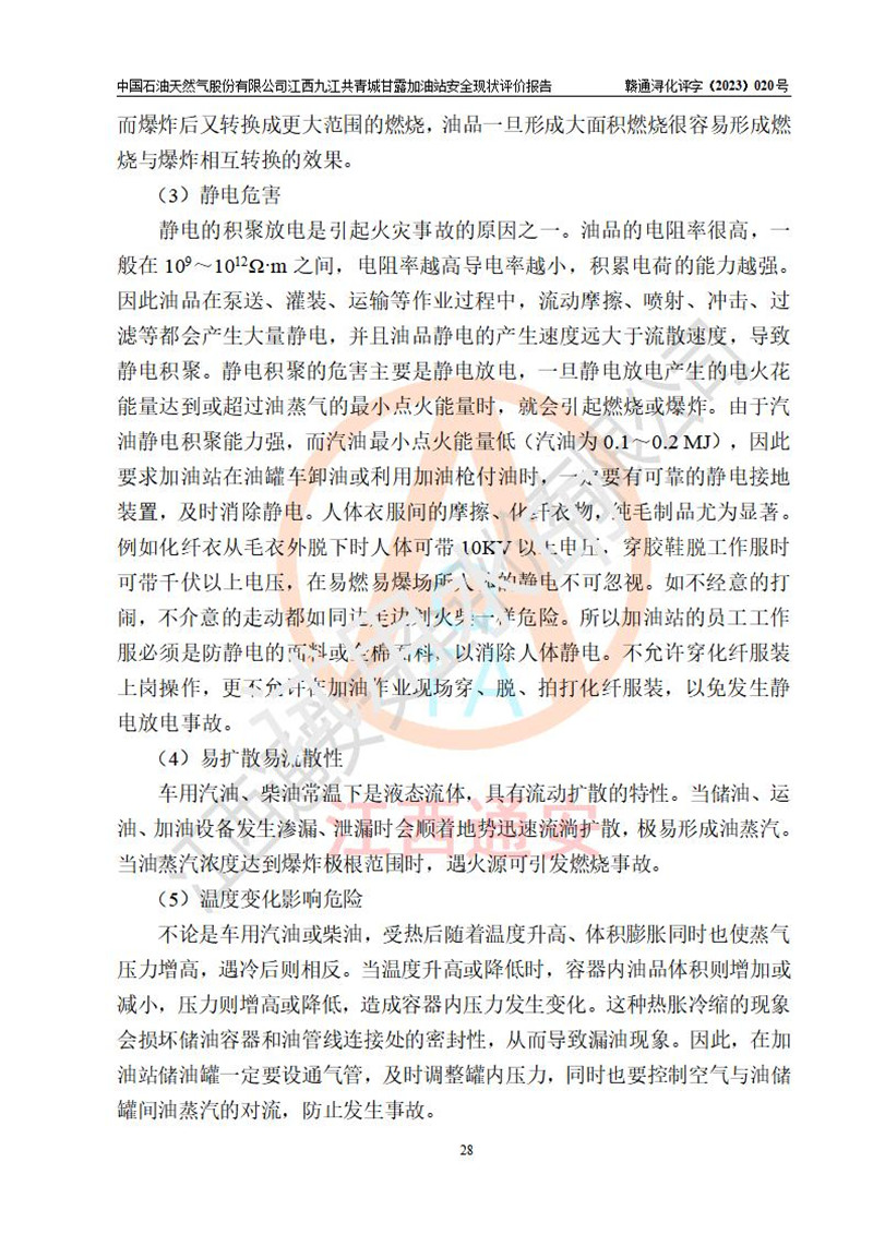 评价报告名称 | 中国石油天然气股份有限公司江西九江共青城甘露加油站安全现状评价报告 | |||