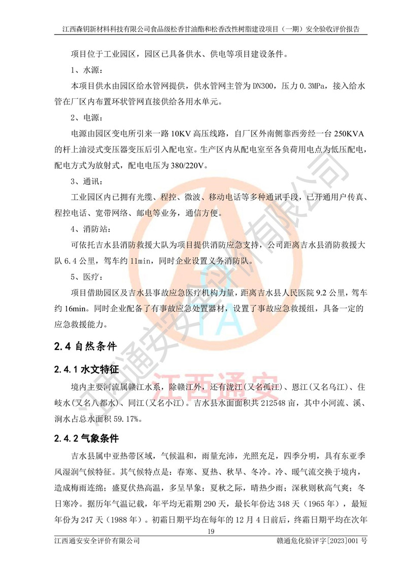 评价报告名称 | 江西森钥新材料科技有限公司食品级松香甘油酯和松香改性树脂建设项目(一期)安全验收评价报告 | ||||