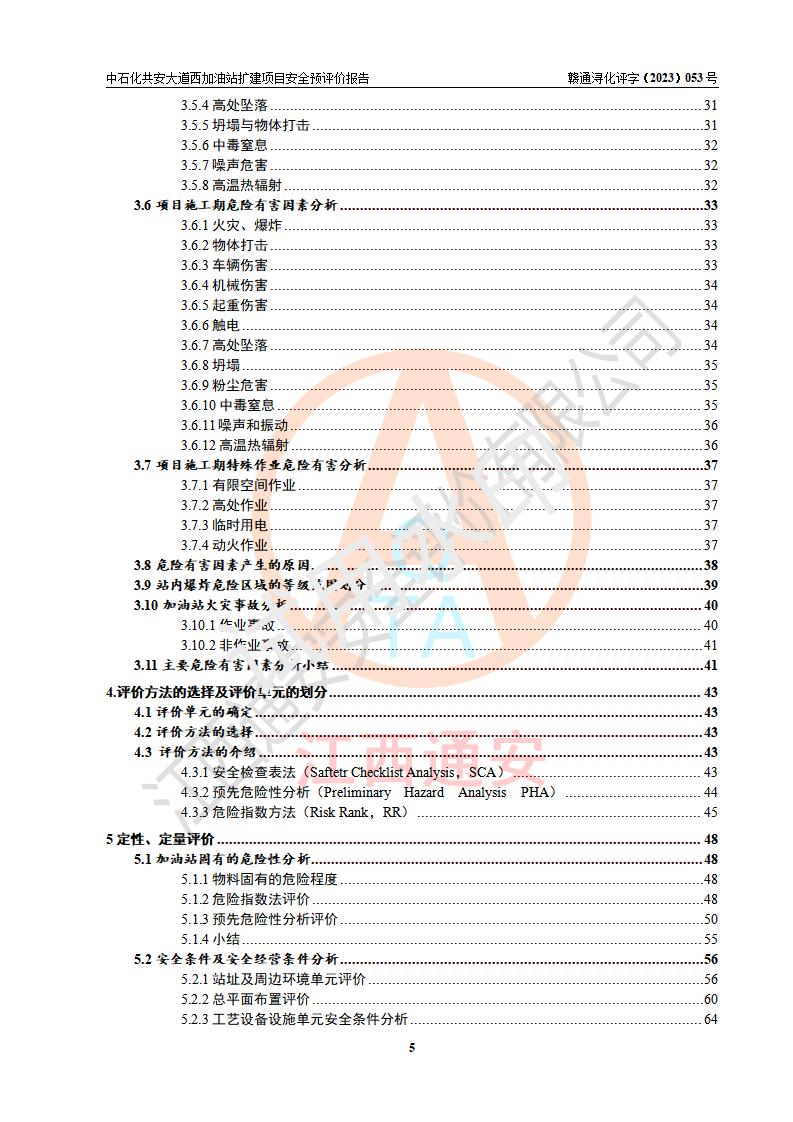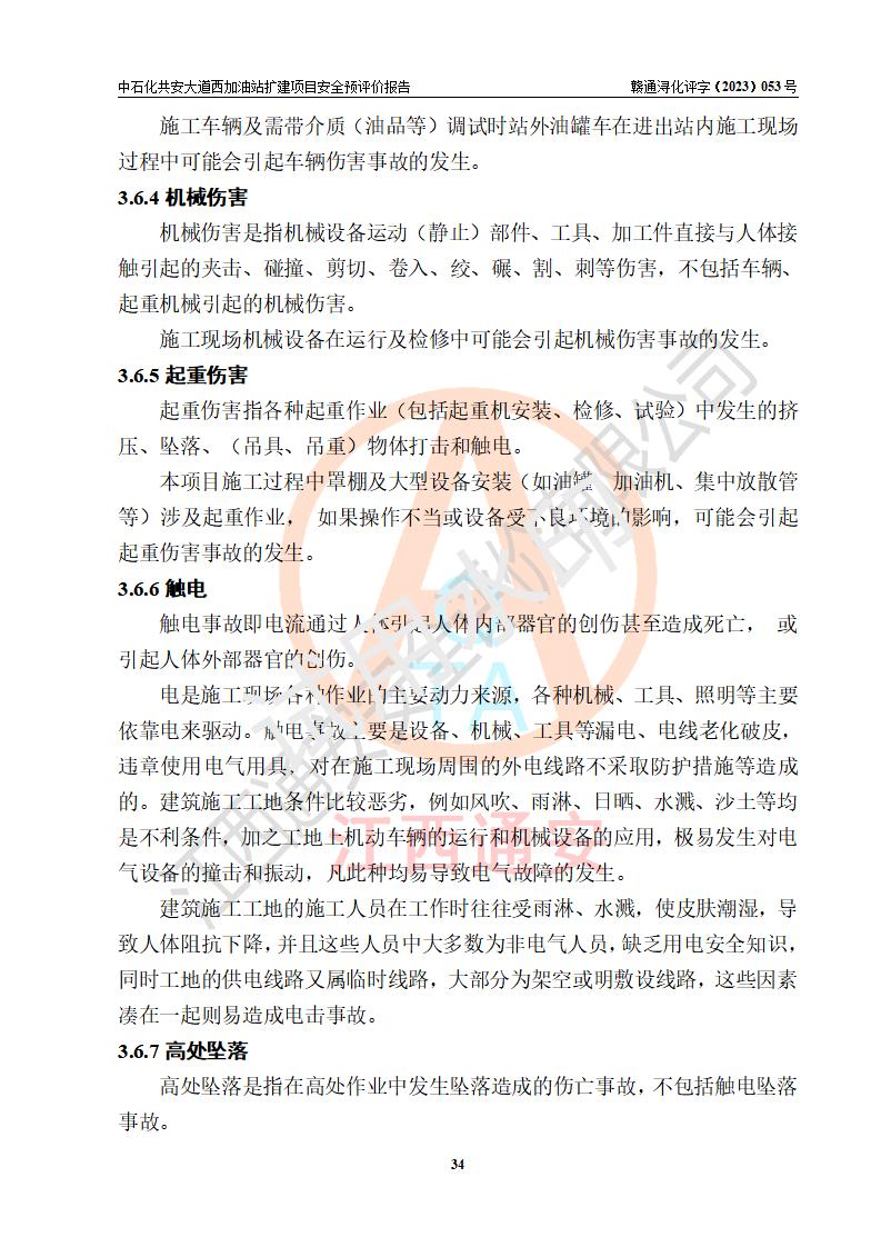 评价报告名称 | 中国石化销售股份有限公司江西九江共青城石油分公司共安大道西加油站扩建项目安全预评价 | |||