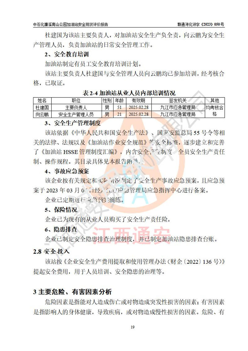 评价报告名称 | 中国石化销售股份有限公司江西九江濂溪石油分公司南山公园加油站安全现状评价报告 | |||