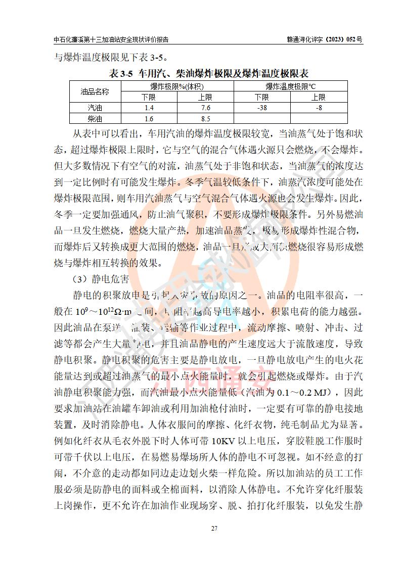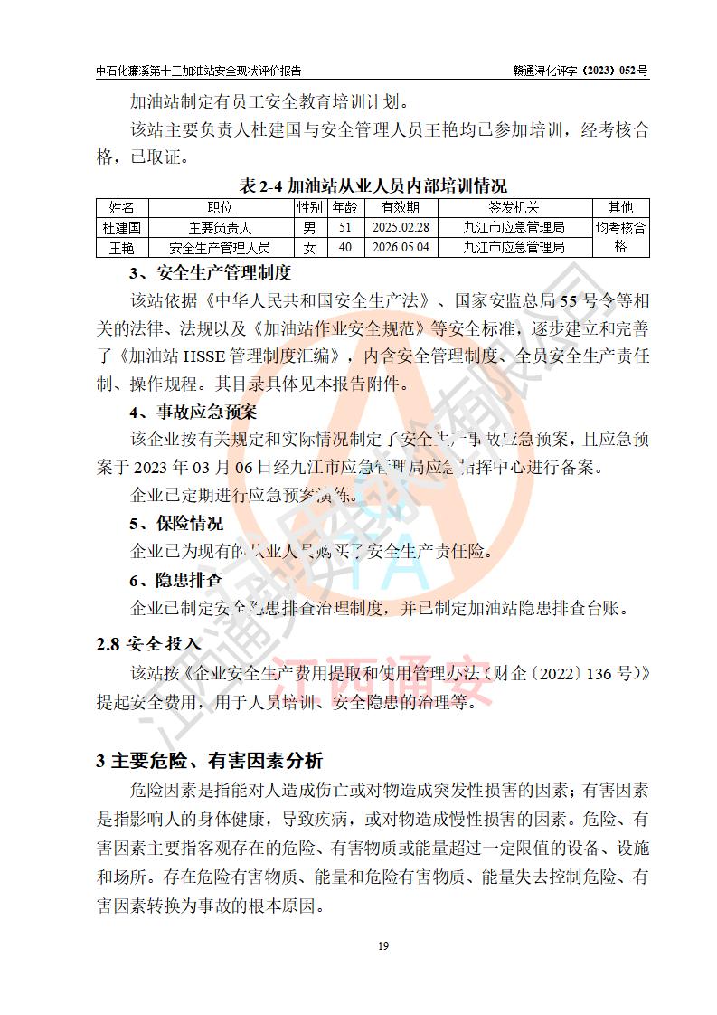 评价报告名称 | 中国石化销售股份有限公司江西九江濂溪石油分公司第十三加油站安全现状评价报告 | |||
