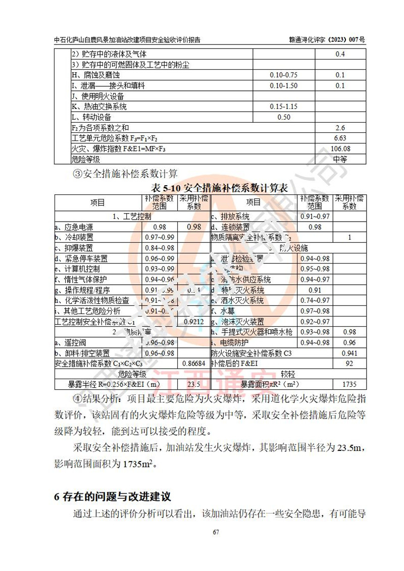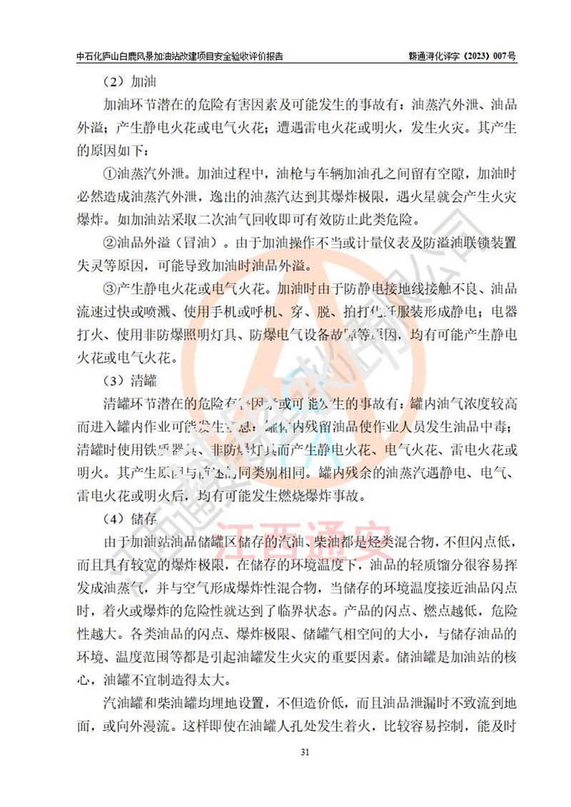 评价报告名称 | 中国石化销售股份有限公司江西九江庐山石油分公司白鹿风景加油站改建项目安全验收报告 | |||