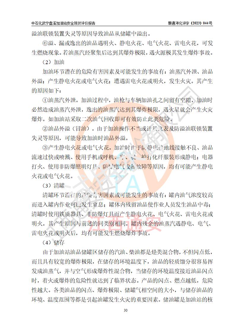 评价报告名称 | 中国石化销售股份有限公司江西九江武宁石油分公司盘溪加油站安全现状评价报告 | |||