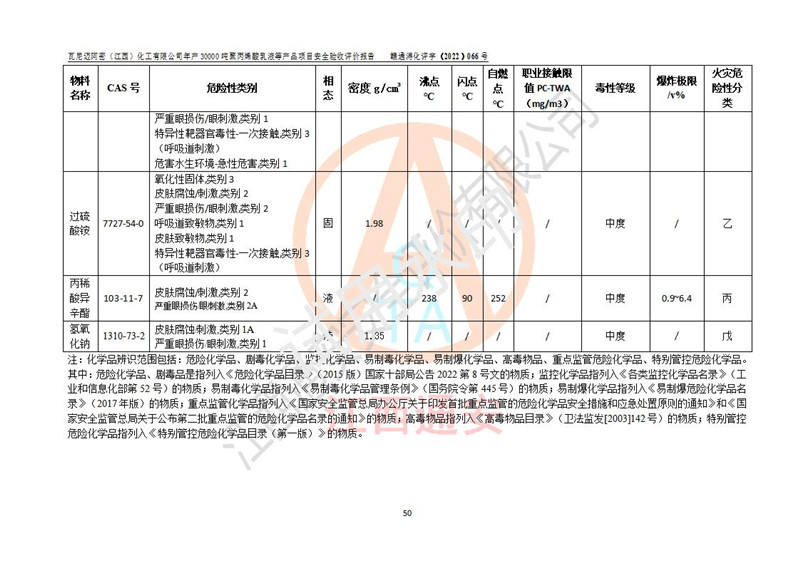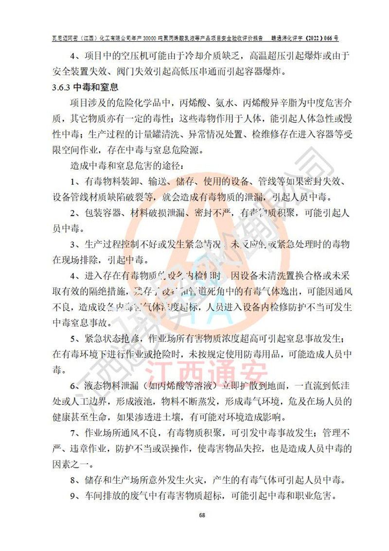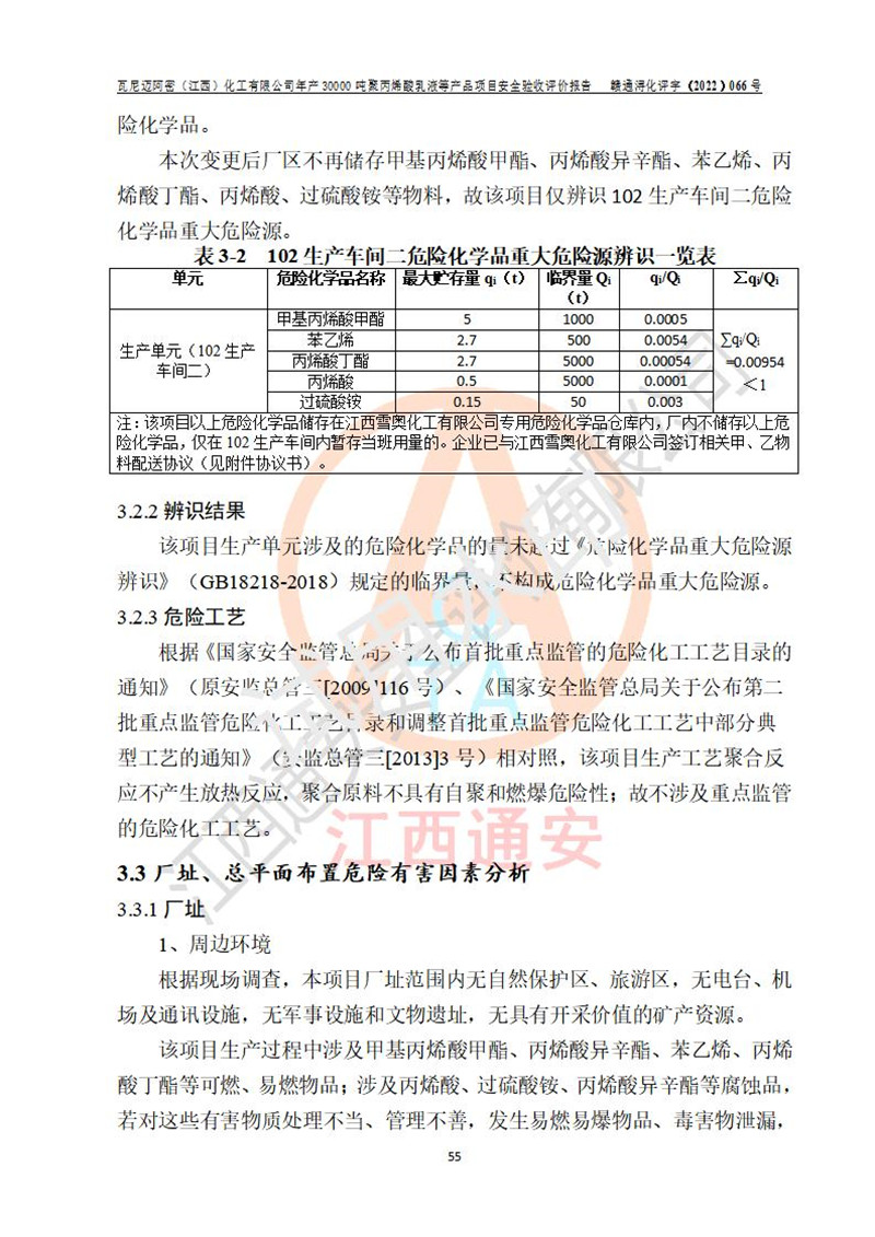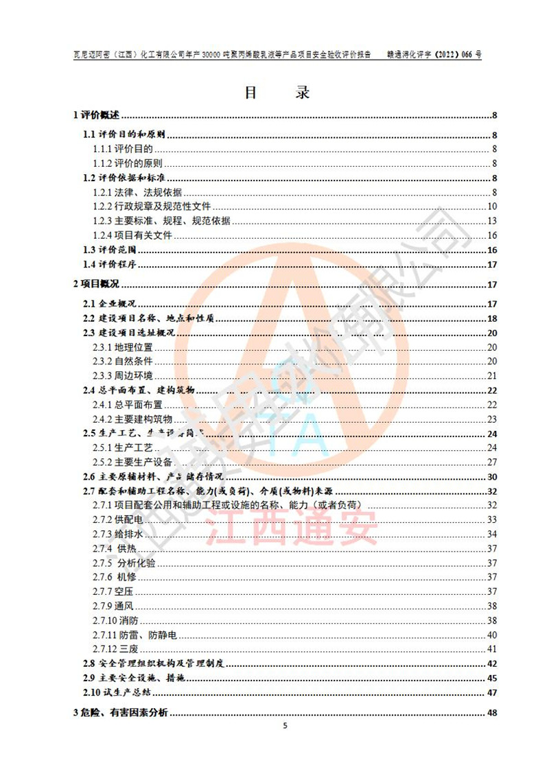 评价报告名称 | 瓦尼迈阿密(江西)化工有限公司年产30000吨聚丙烯酸乳液等产品项目安全验收评价报告 | |||||||