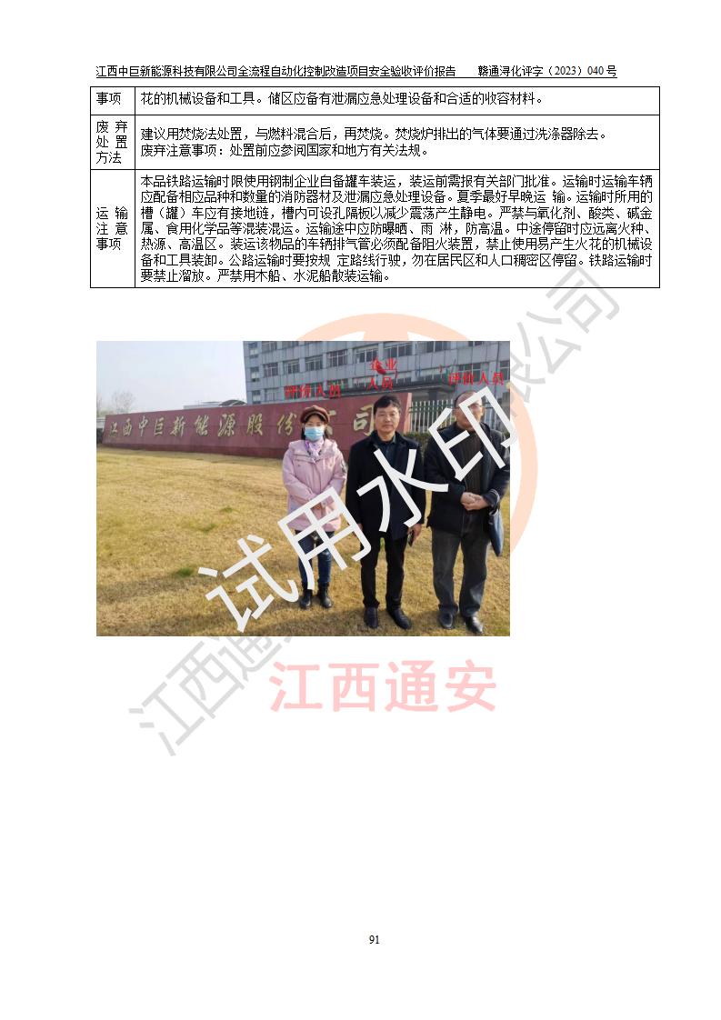 评价报告名称 | 江西中巨新能源科技有限公司全流程自动化控制改造项目安全验收评价报告 | |||||