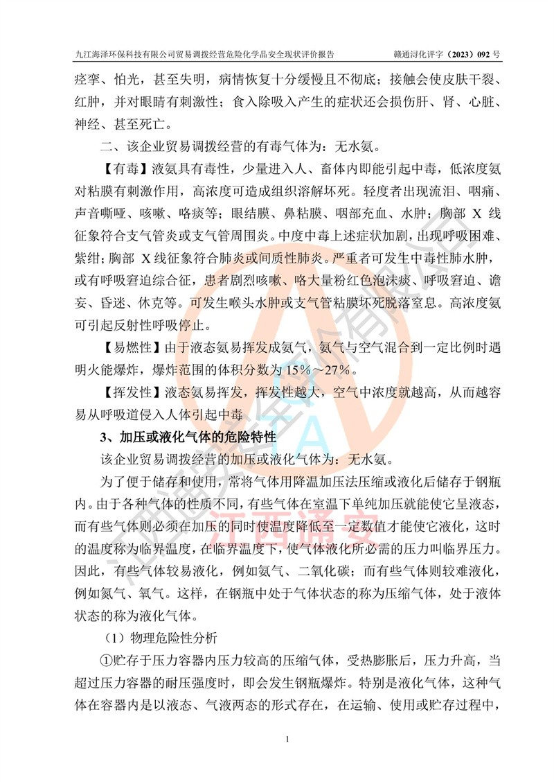 评价报告名称 | 九江海泽**科技有限公司贸易调拨经营危险化学品安全现状评价报告 | |||