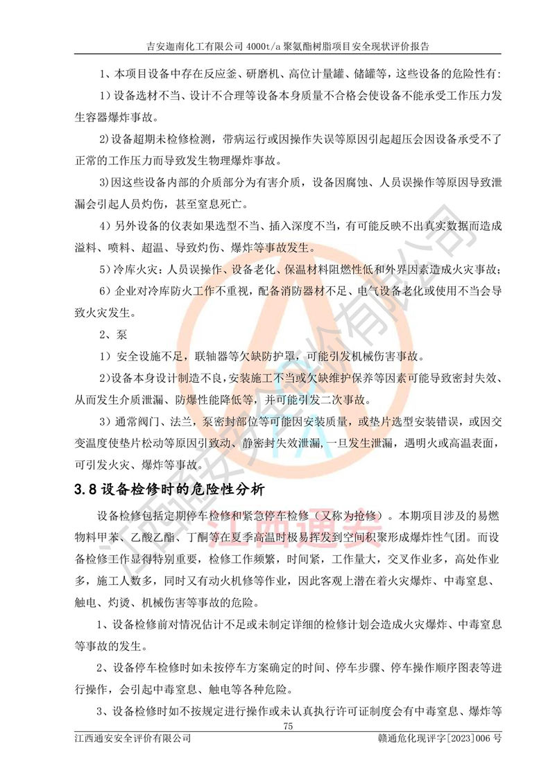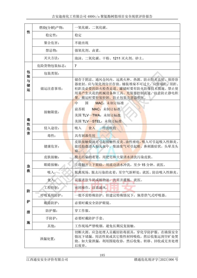 评价报告名称 | 吉安迦南化工有限公司4000t/a聚氨酯树脂项目安全现状评价报告 | ||||