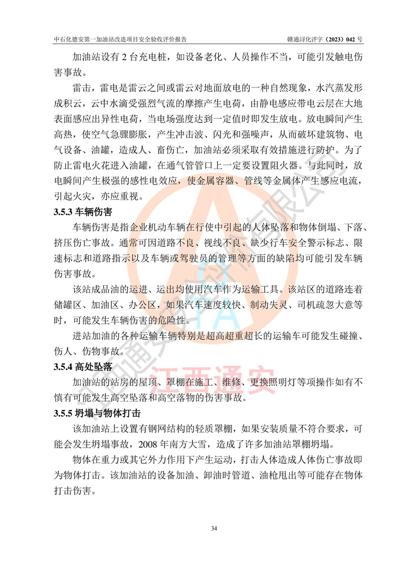评价报告名称 | 中国石化销售股份有限公司江西九江德安石油分公司**加油站改造项目安全验收评价报告 | |||