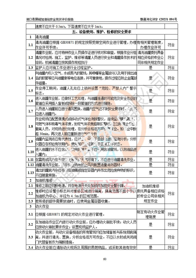 评价结论 | 湖口县屏峰加油站涉及的安全条件、安全经营条件、安全生产管理符合《危险化学品经营许可证管理办法》、《汽车加油加气加氢站技术标准》等**有关法规、标准、规范要求,能满足危险化学品经营安全条件。 | |||