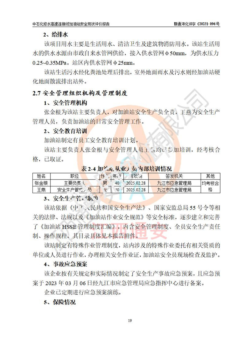 评价报告名称 | 中国石化销售股份有限公司江西九江修水石油分公司高速连接线加油站安全现状评价报告 | |||