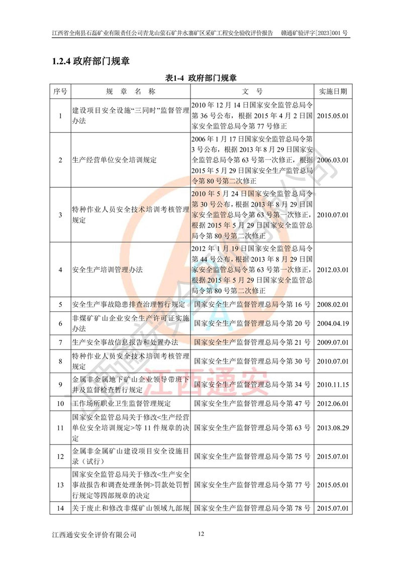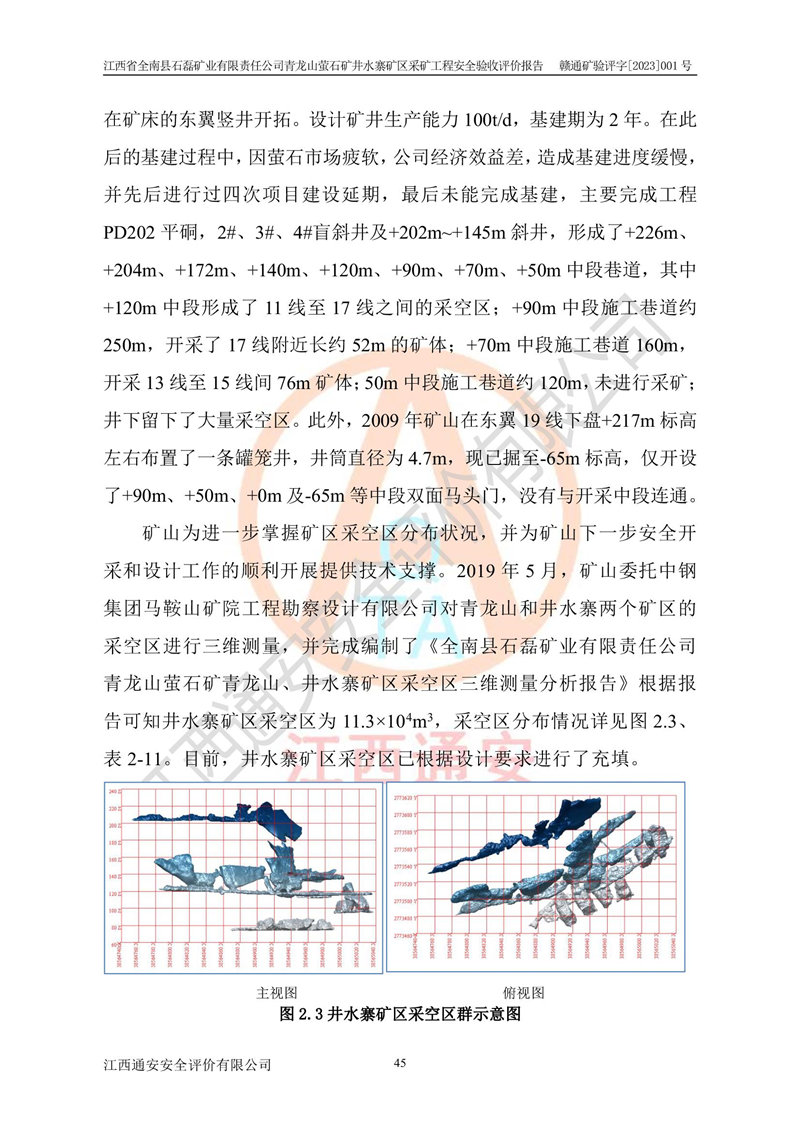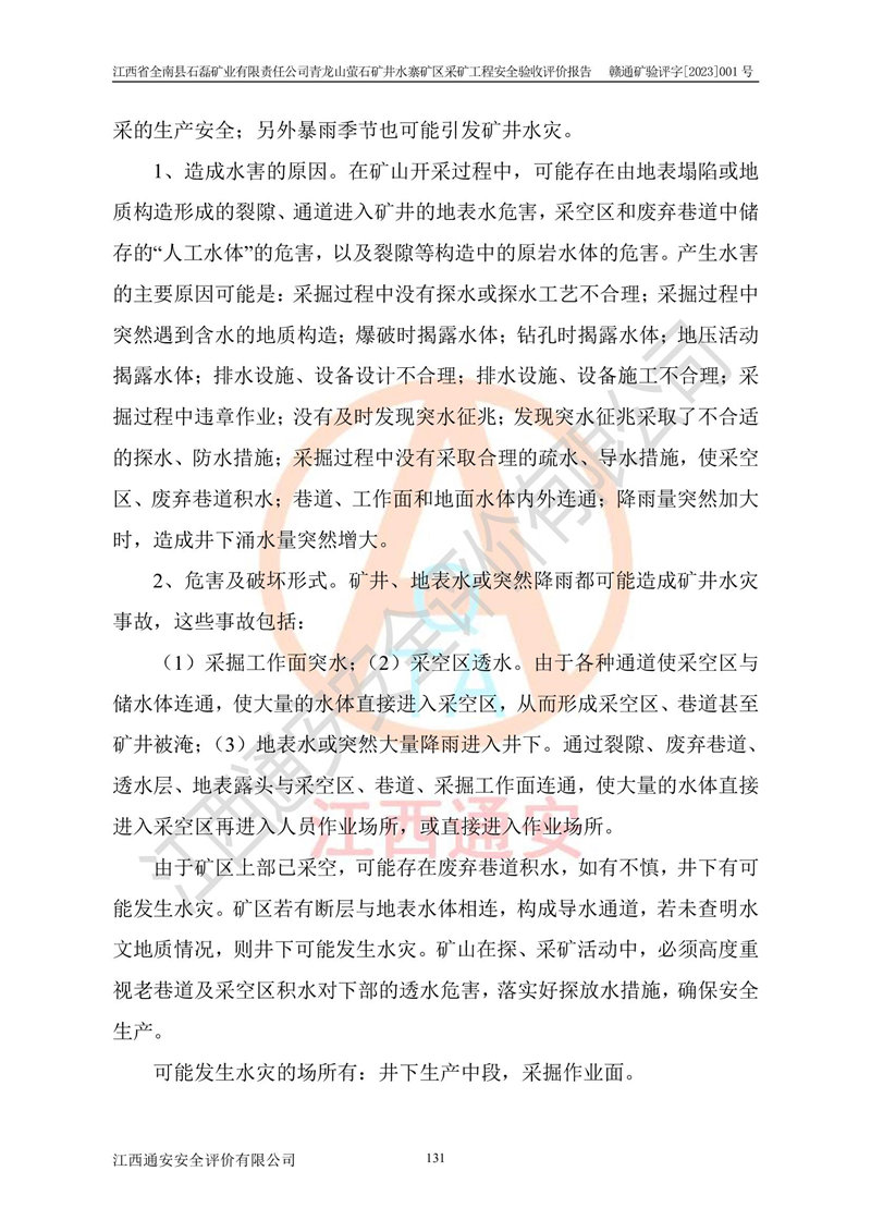 项目名称 | 江西省全南县石磊矿业有限责任公司青龙山萤石矿井水寨矿区采矿工程安全验收评价报告 | ||||