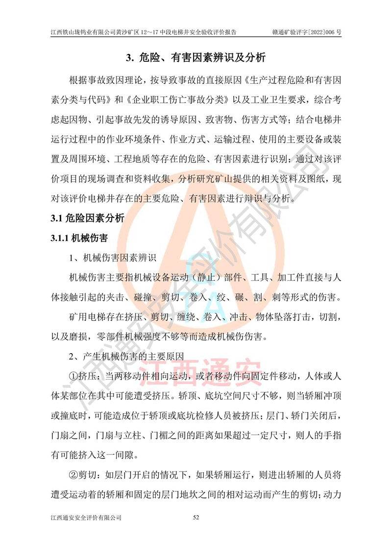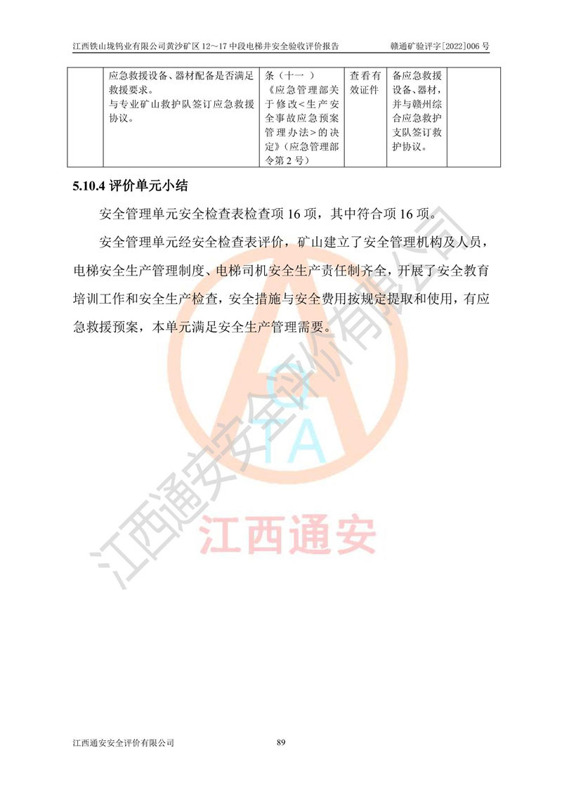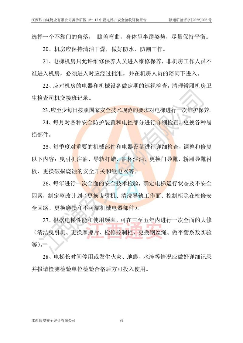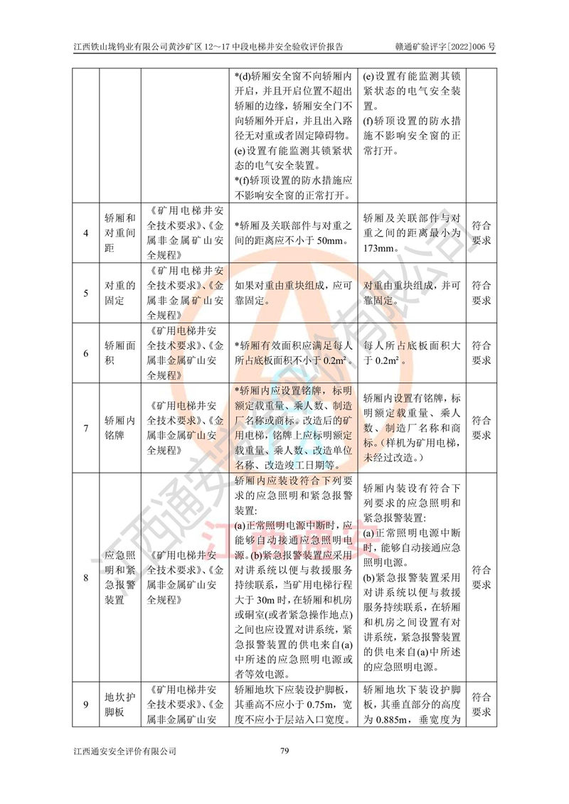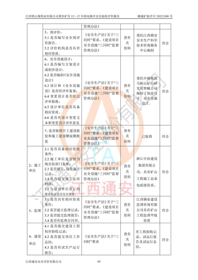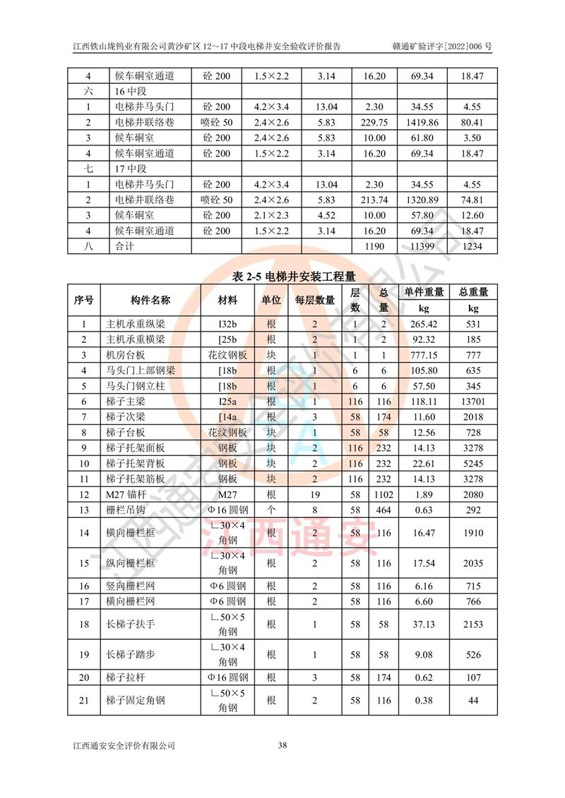 项目名称 | 江西铁山垅钨业有限公司黄沙矿区12~17中段电梯井验收评价报告 | ||||