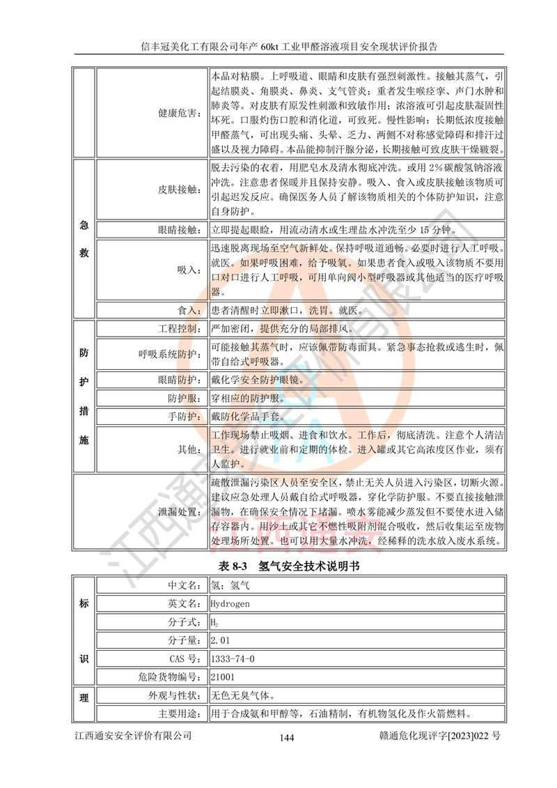评价报告名称 | 信丰冠美化工有限公司年产60kt工业甲醛溶液项目安全现状评价报告 | ||||||