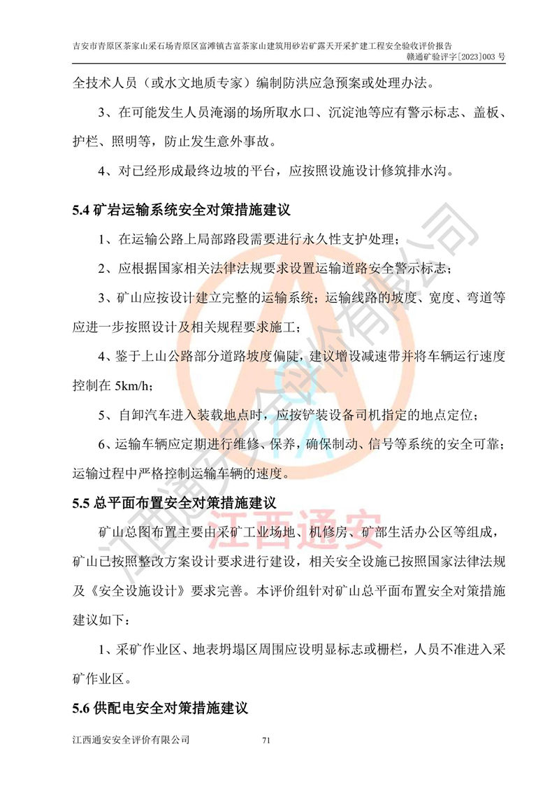 项目名称 | 吉安市青原区茶家山采石场青原区富滩镇古富茶家山建筑用砂岩矿露天开采扩建工程安全验收评价报告 | ||||