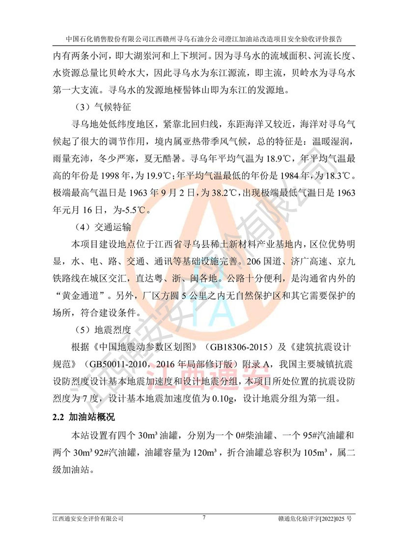 项目名称 | 中国石化销售股份有限公司江西赣州寻乌石油分公司澄江加油站改造项目安全验收评价报告 | ||||