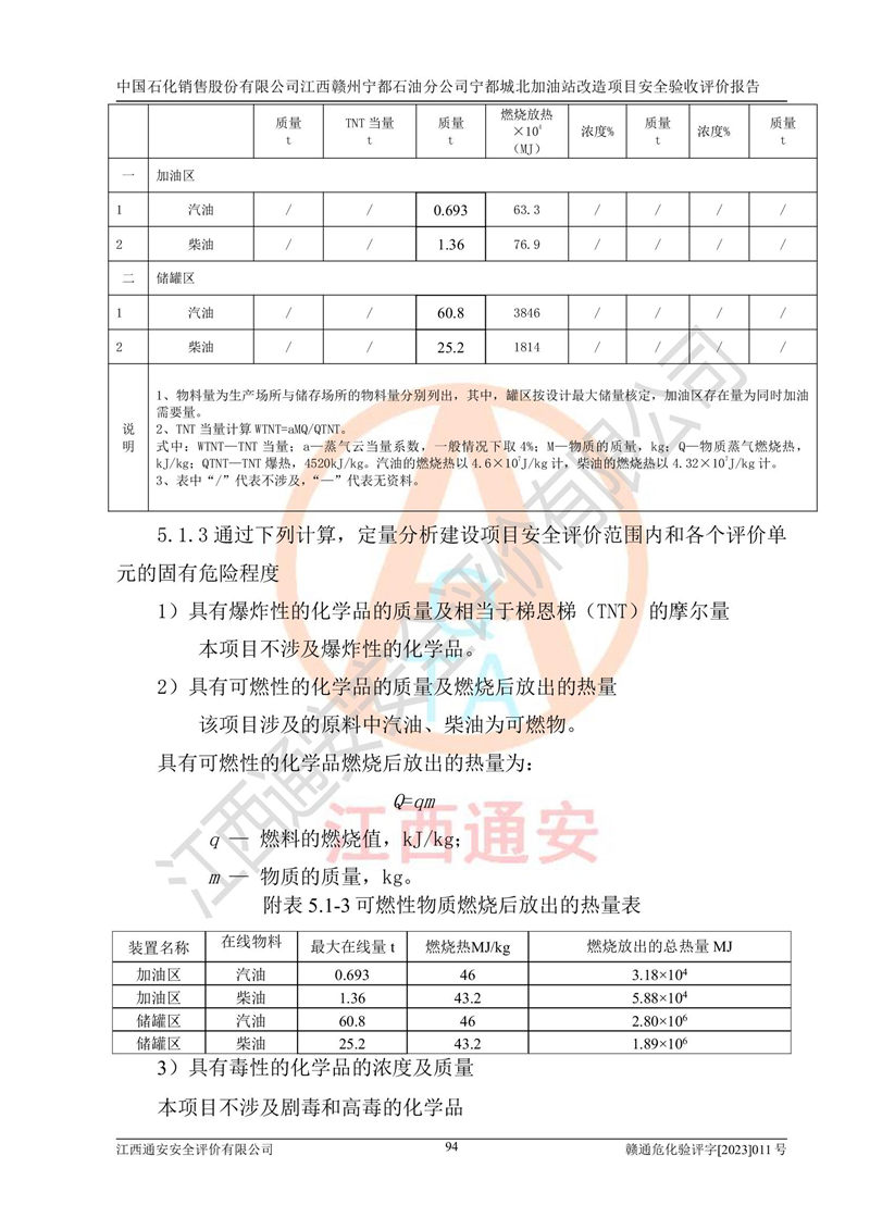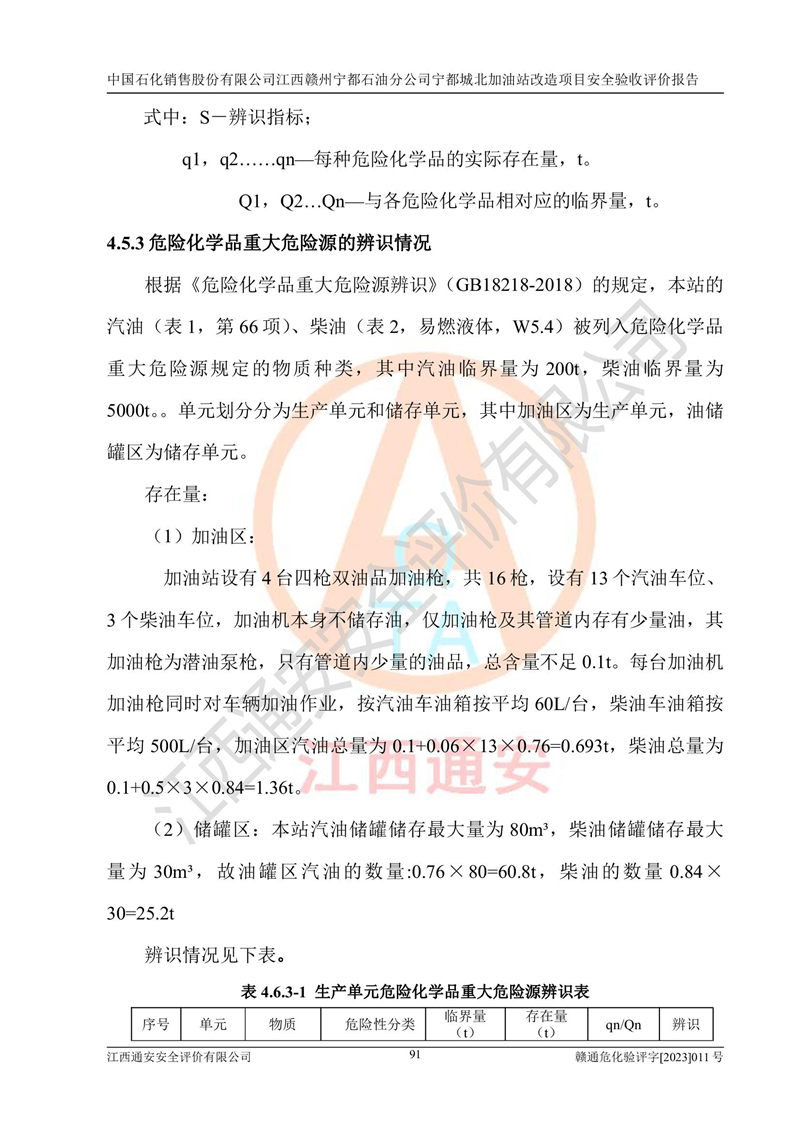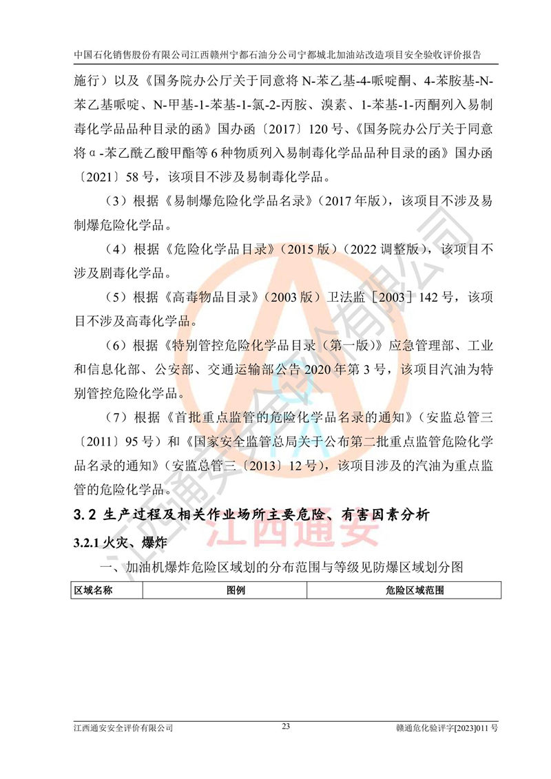 项目名称 | 中国石化销售股份有限公司江西赣州宁都石油分公司宁都城北加油站新建项目安全验收评价报告 | ||||