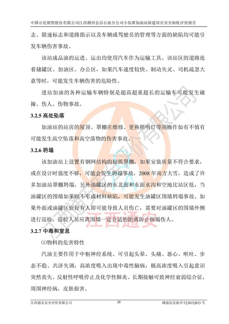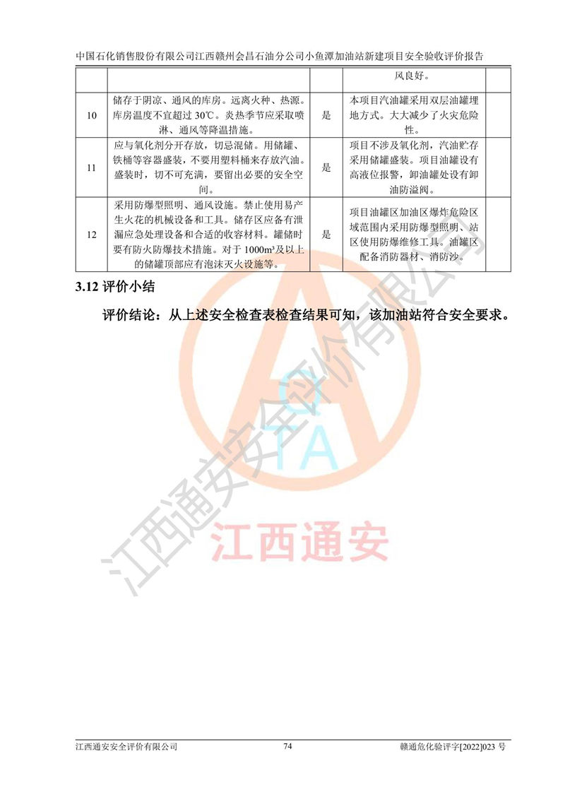项目名称 | 中国石化销售股份有限公司江西赣州会昌石油分公司小鱼潭加油站新建项目安全验收评价报告 | ||||