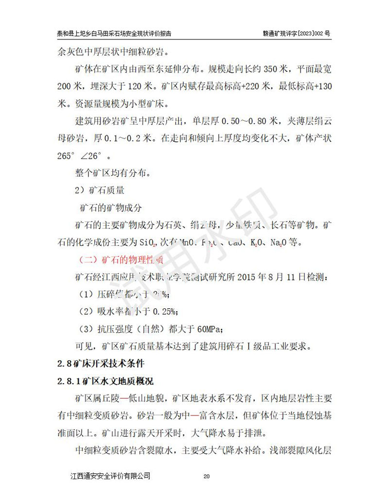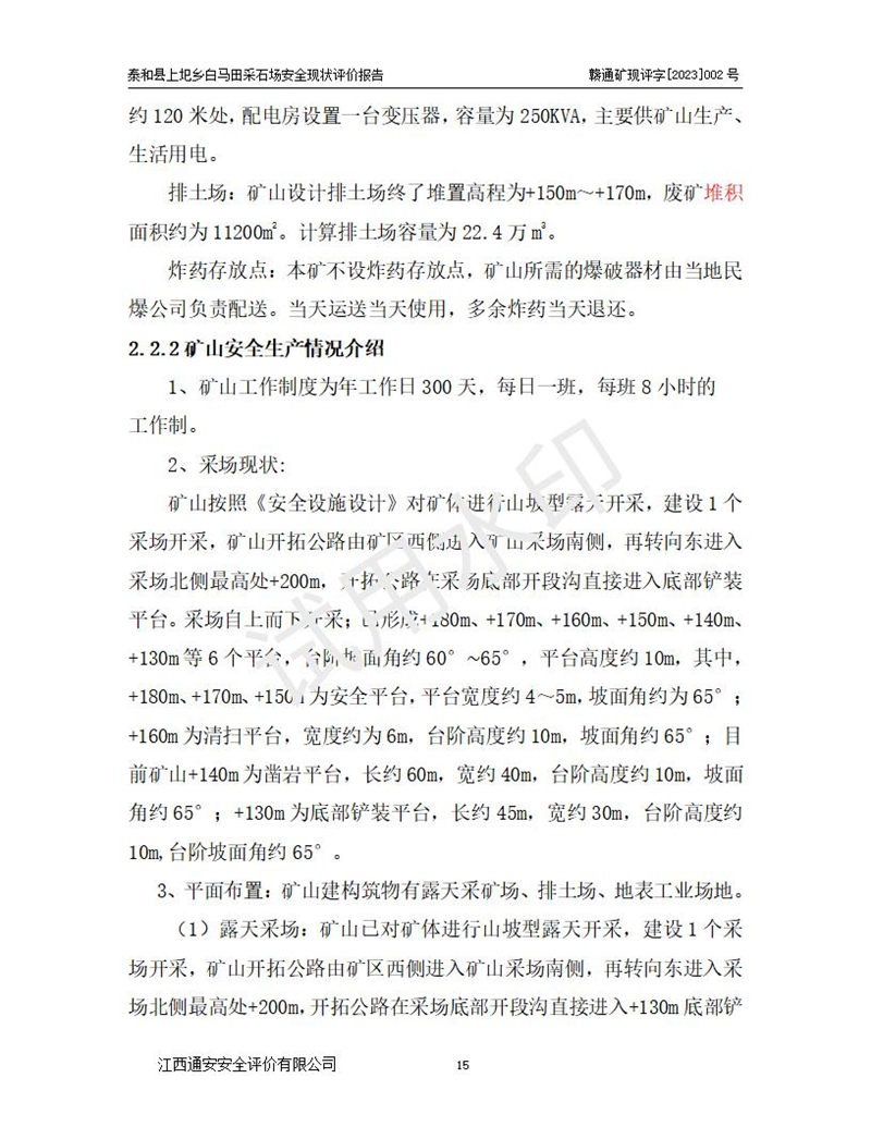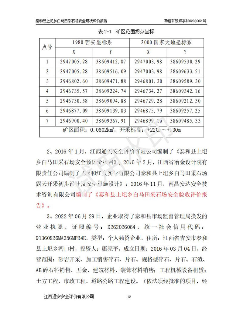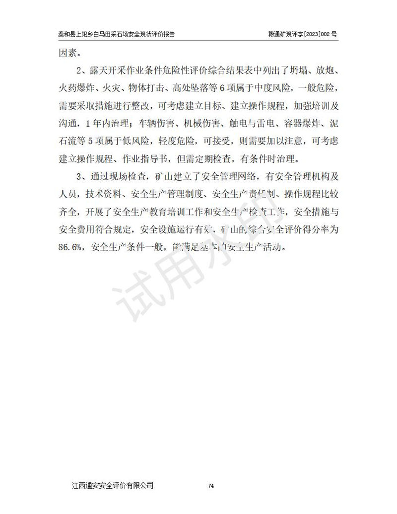 项目名称 | 泰和县上圯乡白马田采石场安全现状评价报告 | ||||