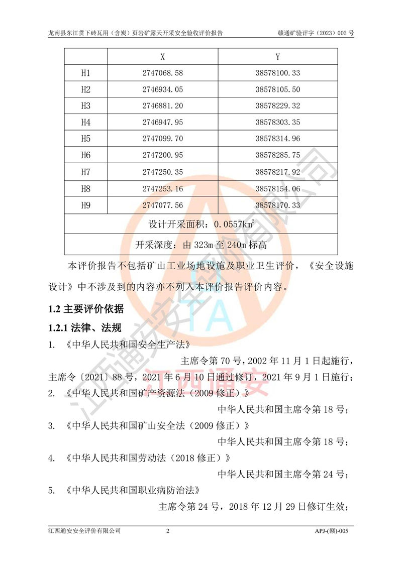 项目名称 | 龙南县东江贯下砖瓦用(含炭)页岩矿露天开采安全验收评价 | ||||