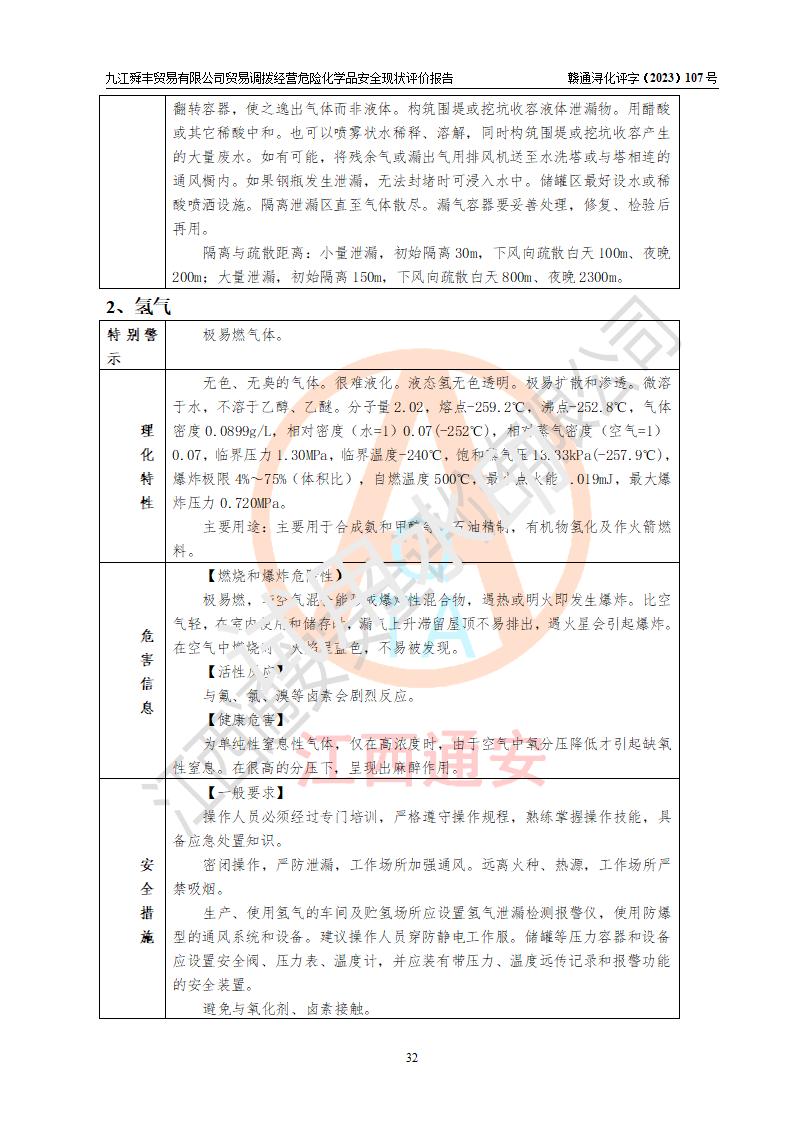 评价结论 | 九江舜丰贸易有限公司贸易调拨经营危险化学品的安全条件符合**有关法规、标准、规范要求,具备危险化学品经营安全条件。 | |||