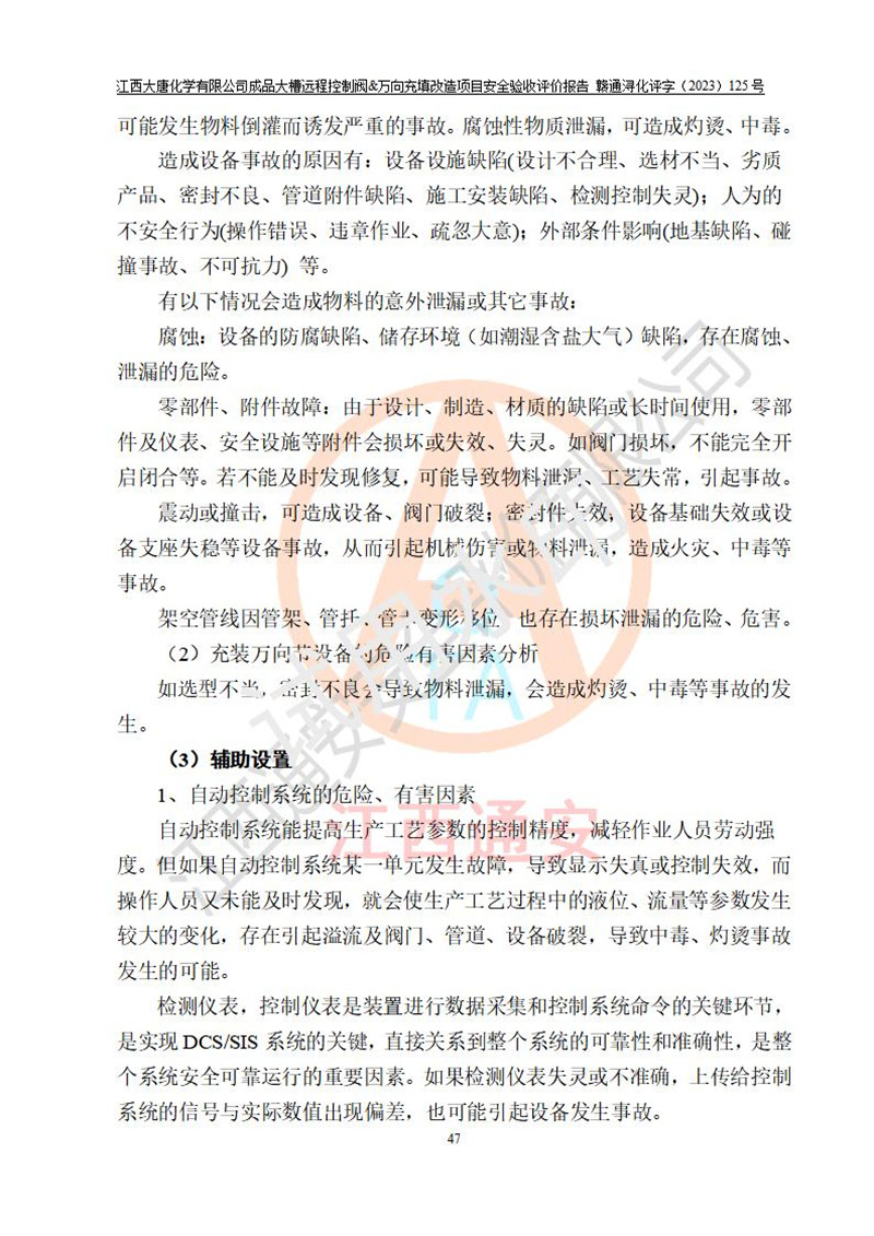 评价报告名称 | 江西大唐化学有限公司成品大槽远程控制阀&万向充填改造项目安全验收评价报告 | ||||