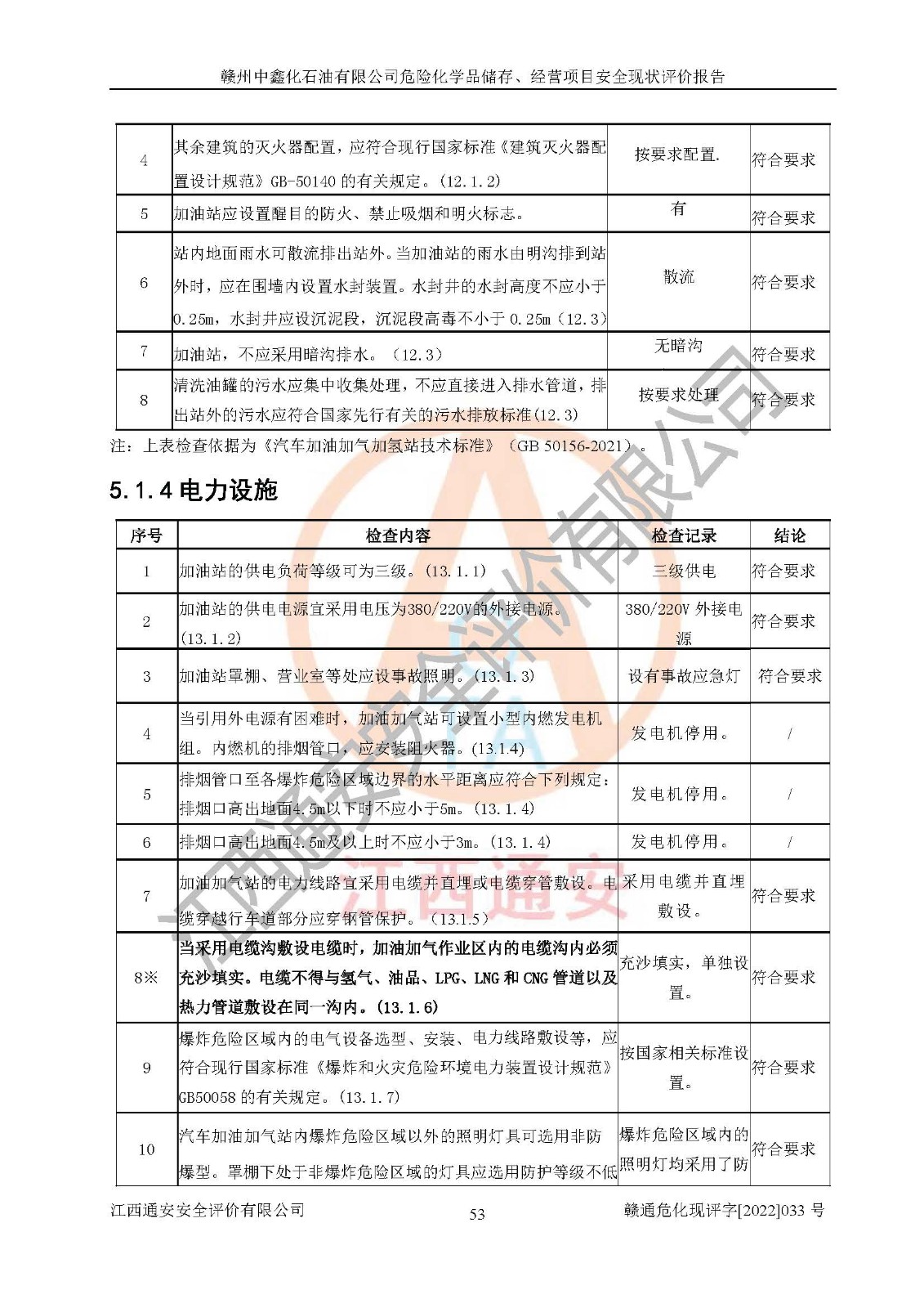 评价结论 | 赣州中鑫化石油有限公司危险化学品储存、经营项目安全现状符合危险化学品经营安全条件。 | |||