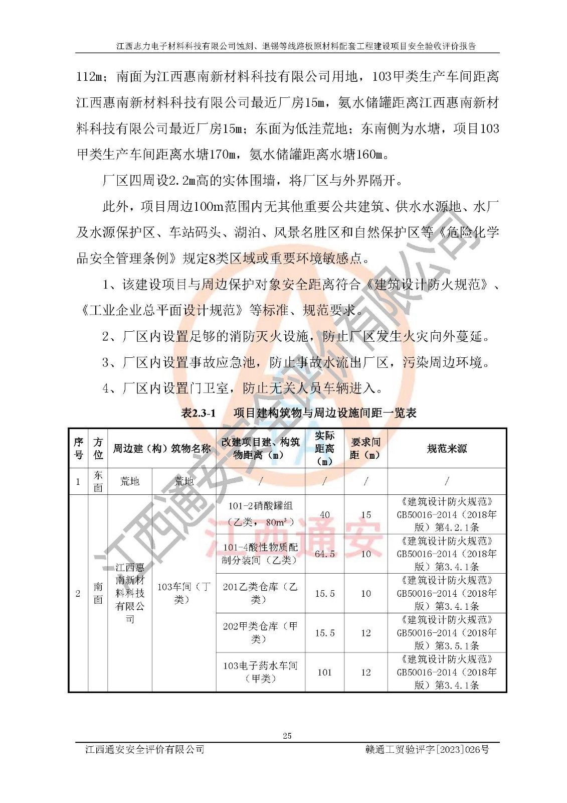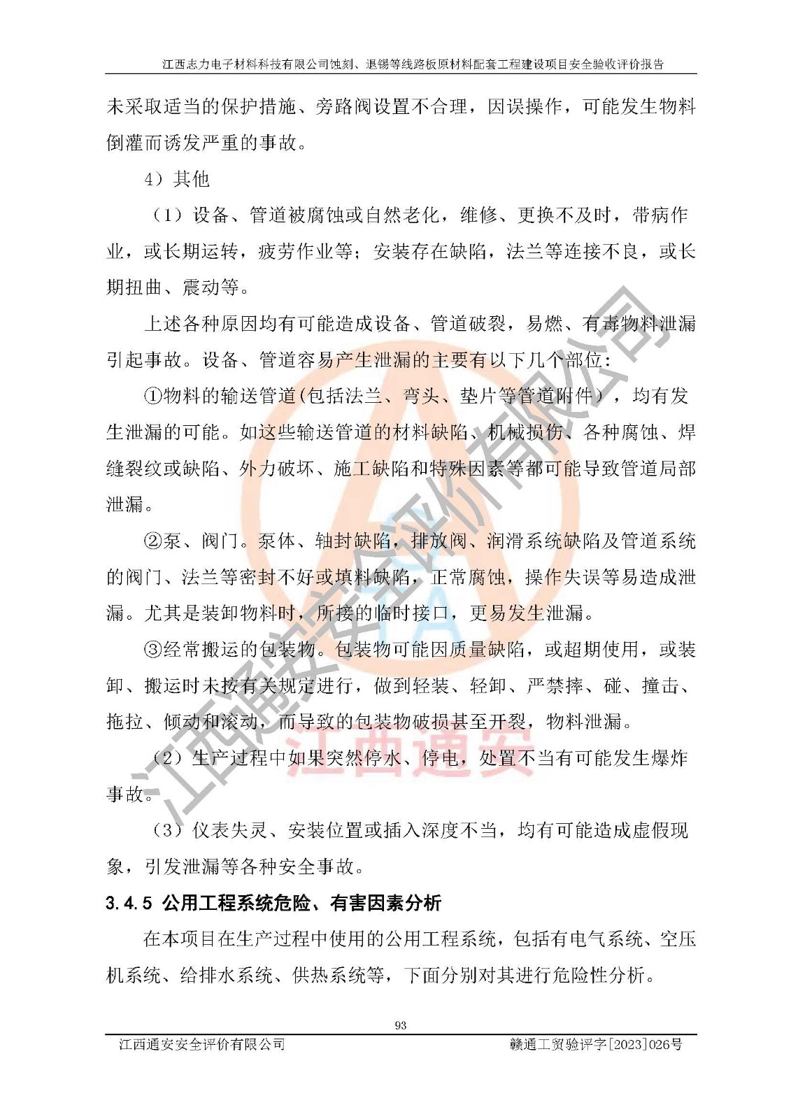 评价报告名称 | 江西志力电子材料科技有限公司蚀刻、退锡等线路板原材料配套工程建设项目安全验收评价报告 | |||