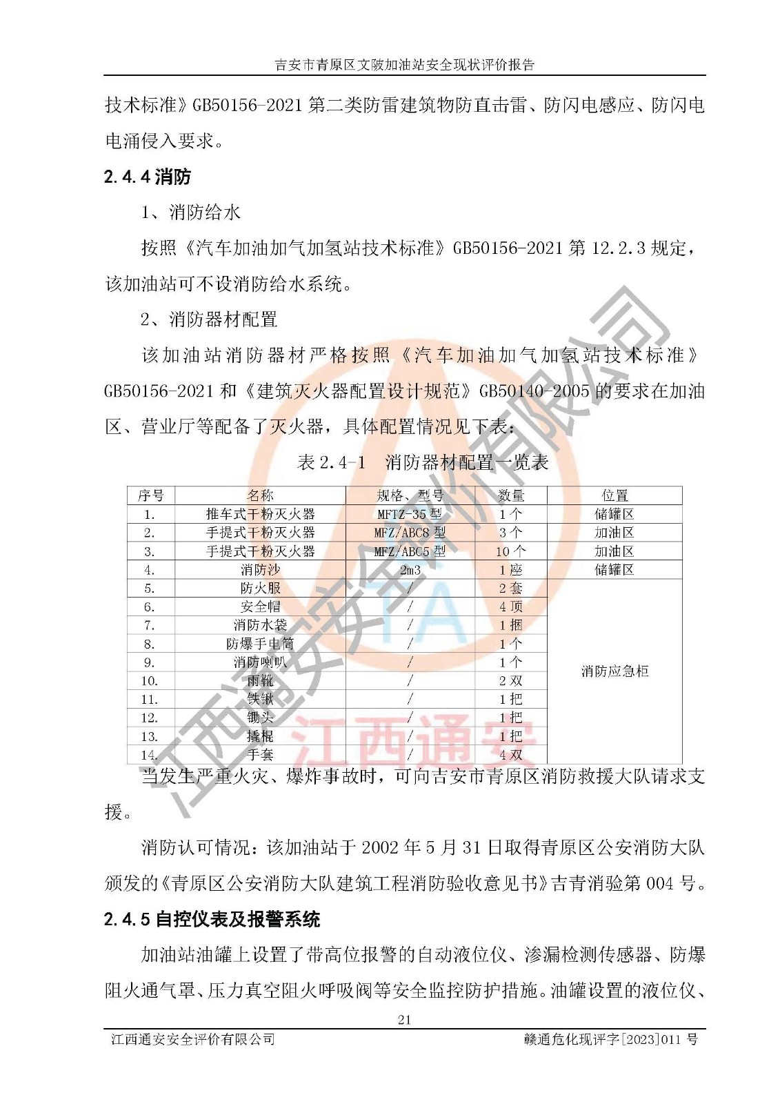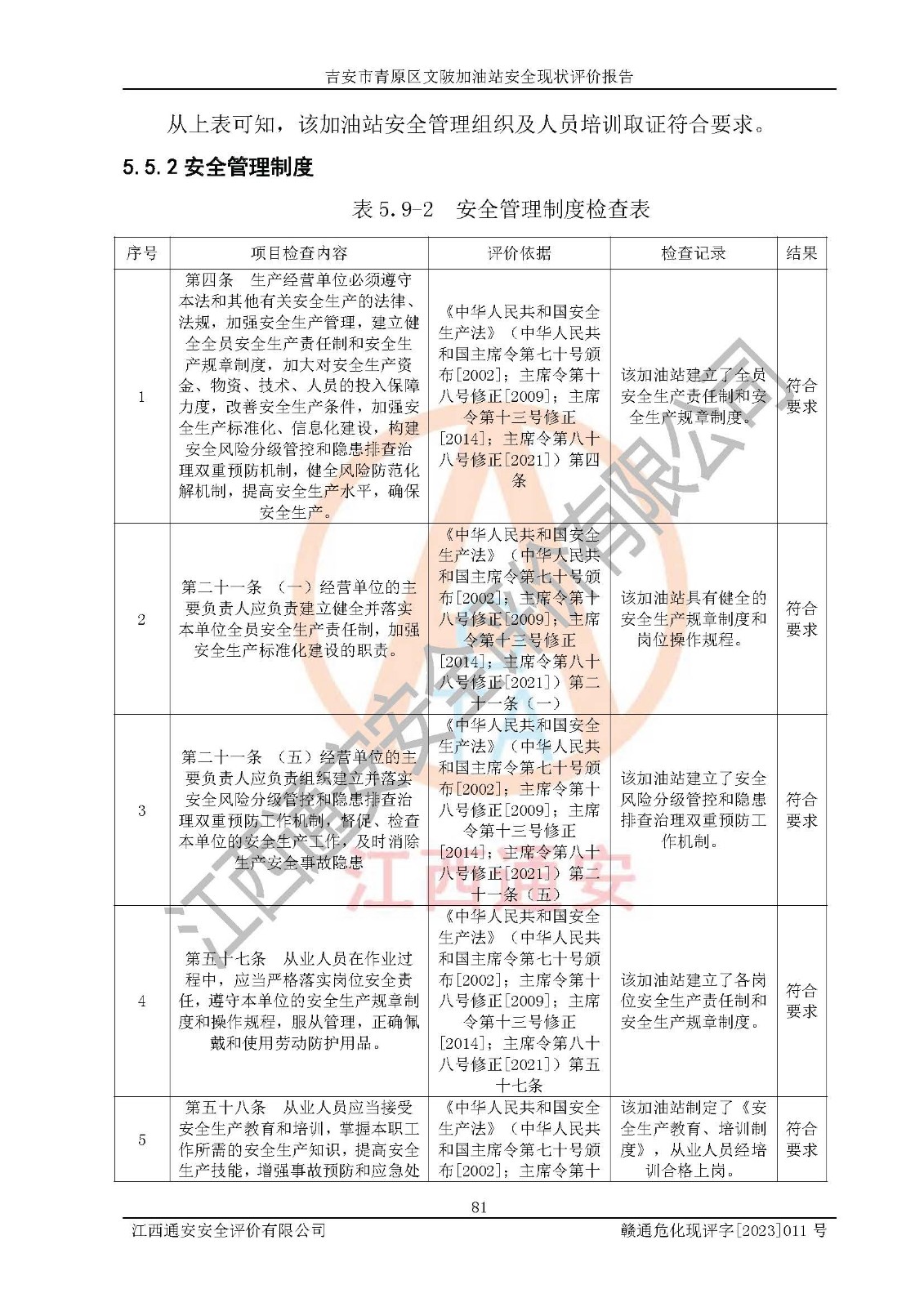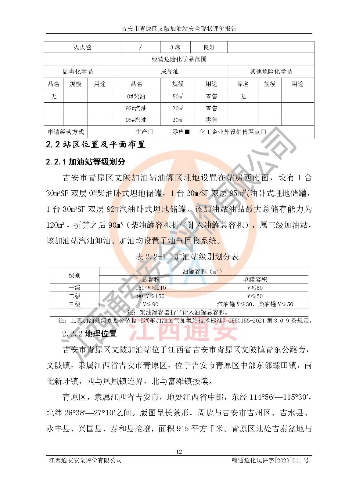 评价报告名称 | 吉安市青原区文陂加油站安全现状评价报告 | ||||