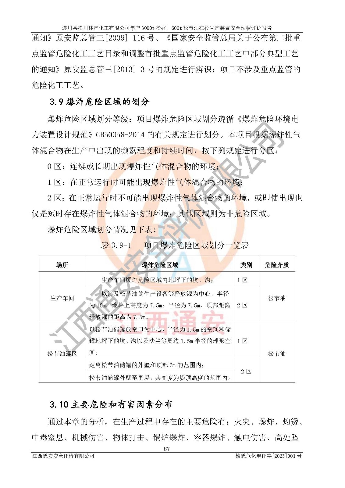 评价报告名称 | 遂川县松川林产化工有限公司年产3000t松香、600t松节油在役生产装置安全现状评价报告 | |||