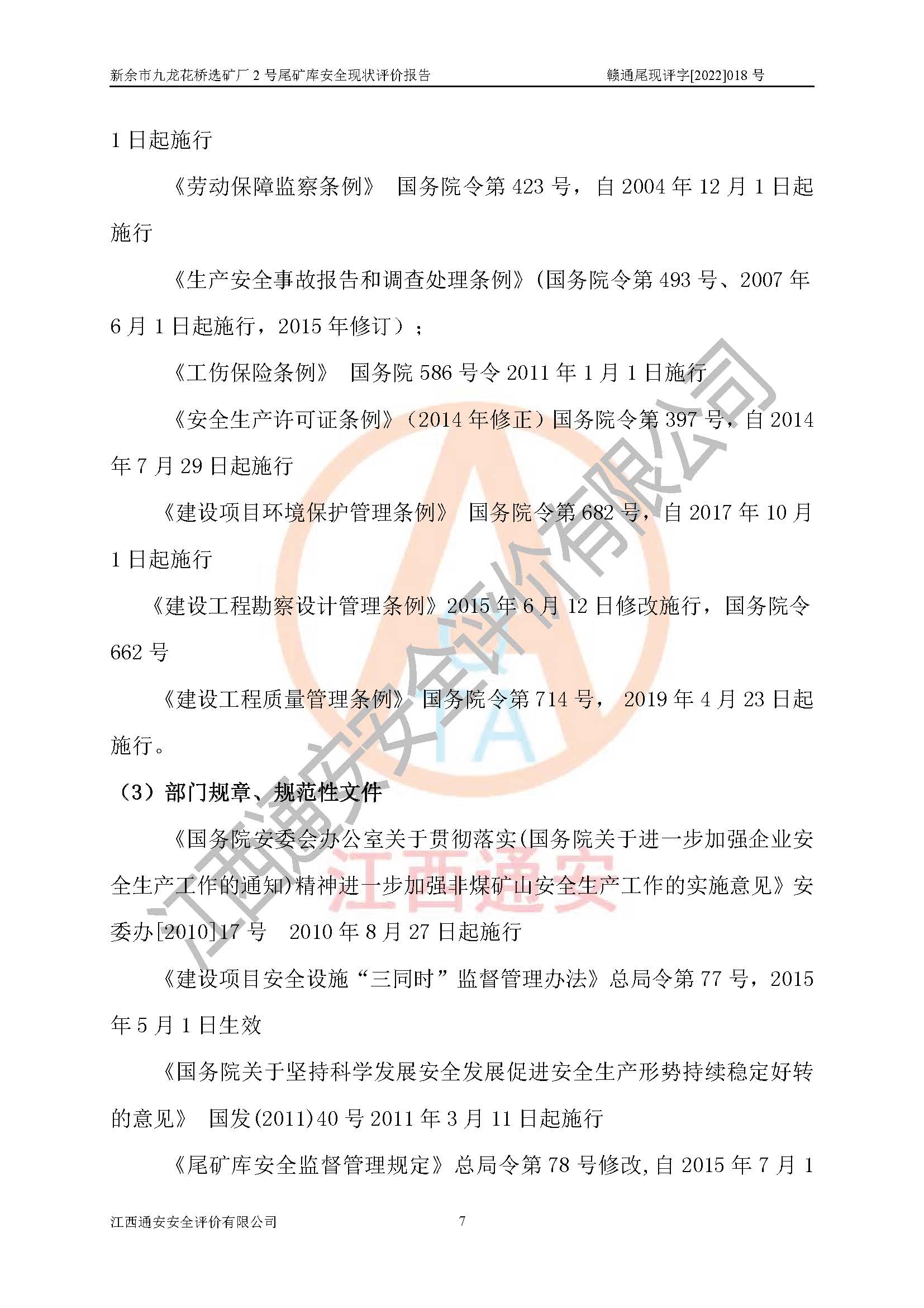 项目名称 | 新余市九龙花桥选矿厂2号尾矿库安全现状评价报告 | ||||