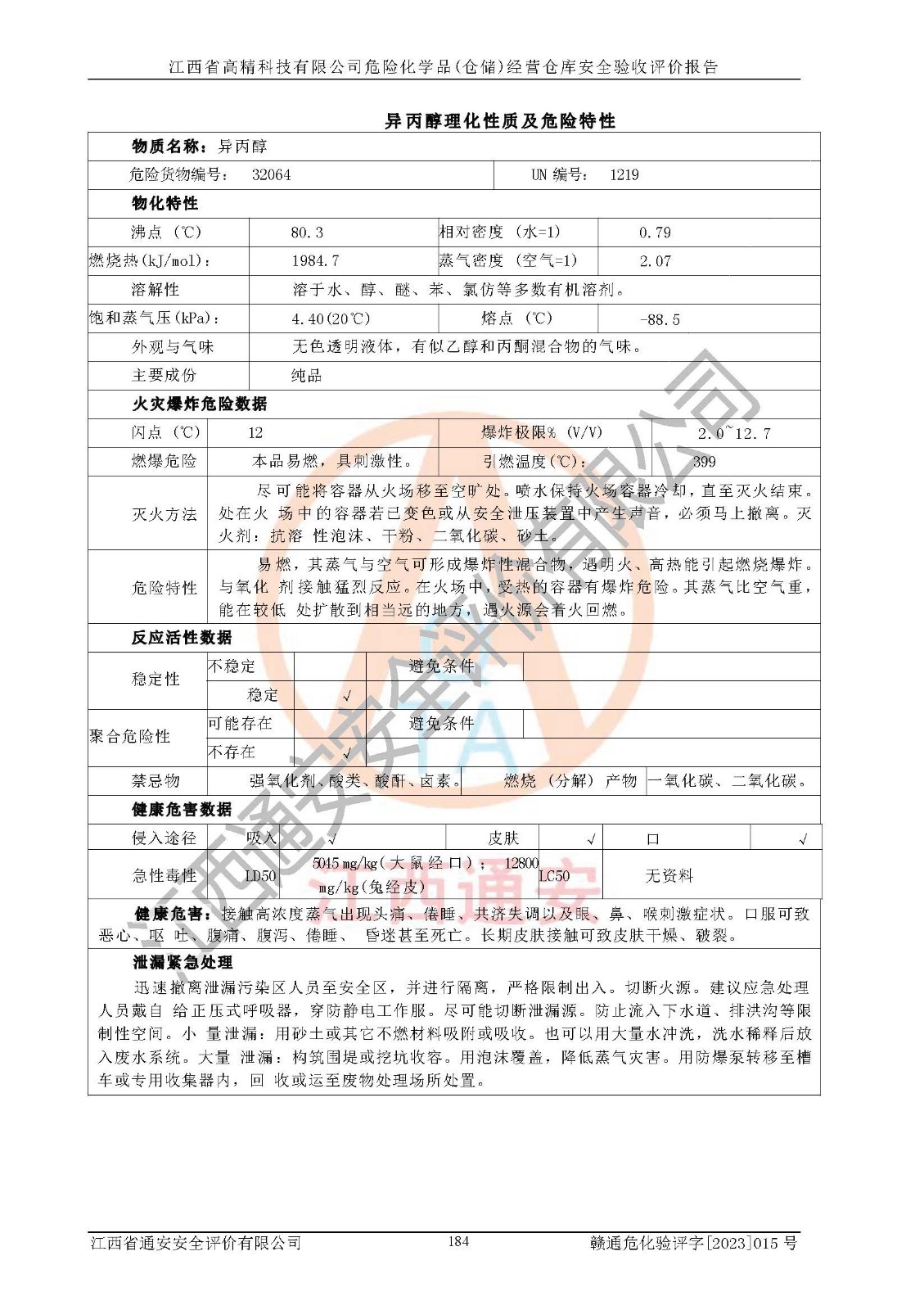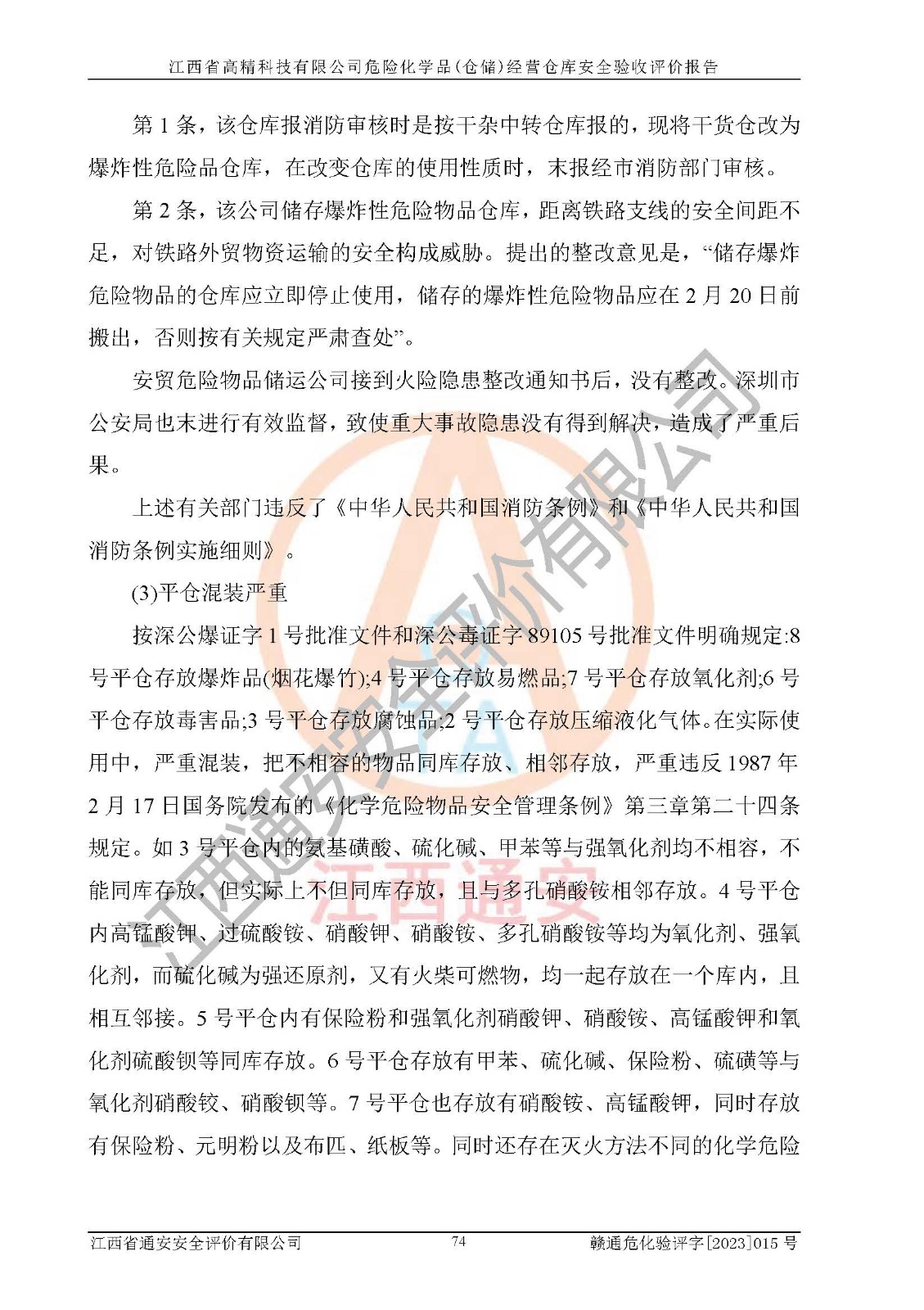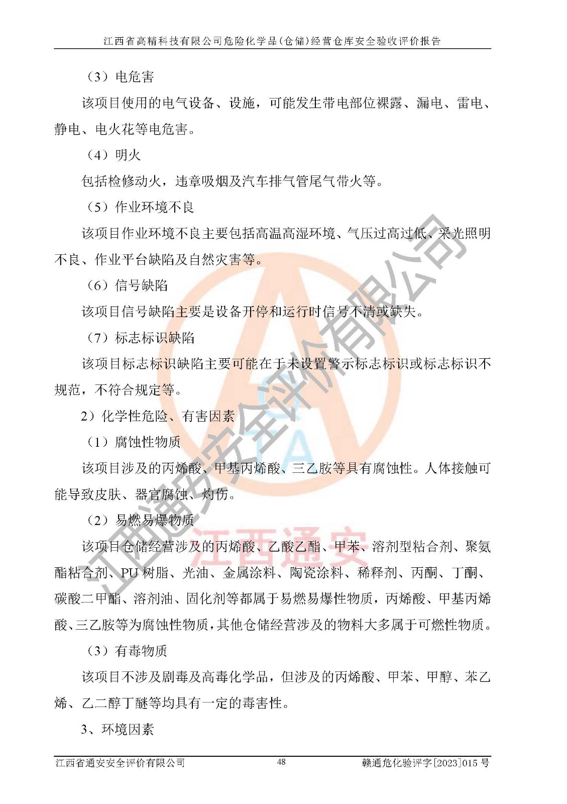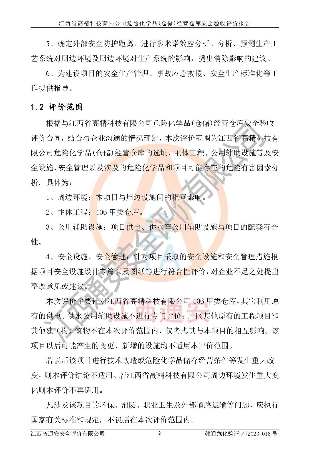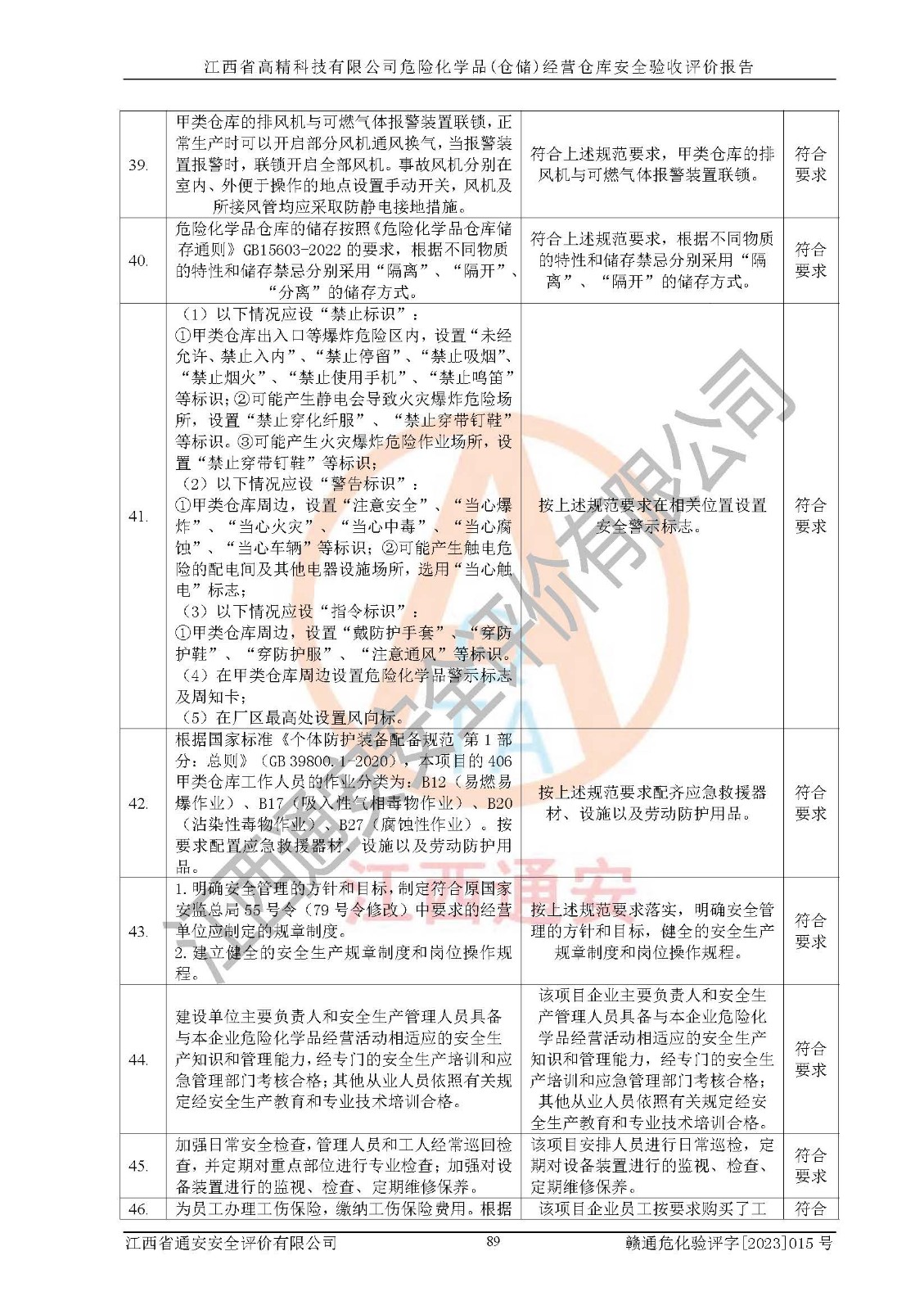 项目名称 | 江西省高精科技有限公司危险化学品(仓储)经营仓库安全验收评价报告 | ||||