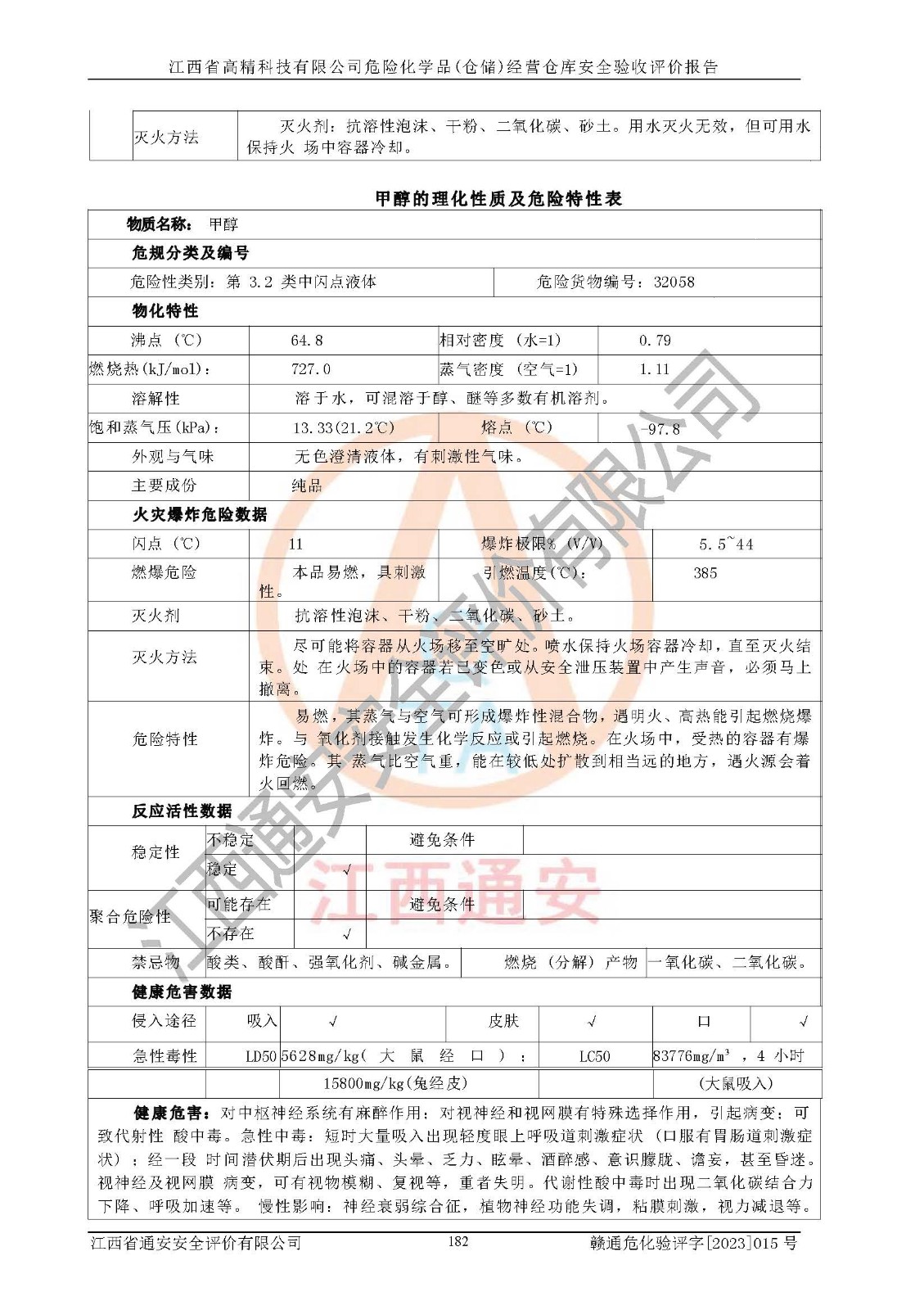 报告编号: 赣通危化验评字[2023]015号